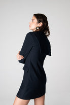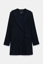 Kruvaze ceket elbise, hem elbise hem de ceket olarak kullanılabilir olması için tasarlanmıştır, bu sayede işlevselliği ön planda tutar. Feminen bir görünüm sağlayan vücuda saran kalıbı, yarı kırlangıç yakası ile tamamlanır ve arkada denizci yakasına dönüşür. Çizgili kumaş seçimi koleksiyonun temasına uygundur ve iki farklı renk seçeneği mevcuttur.