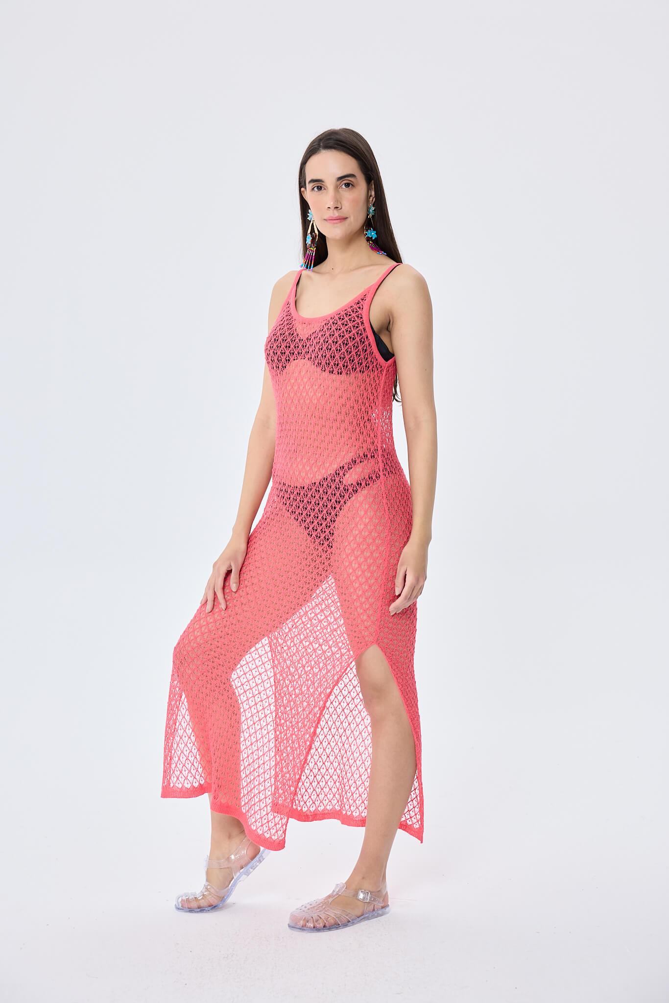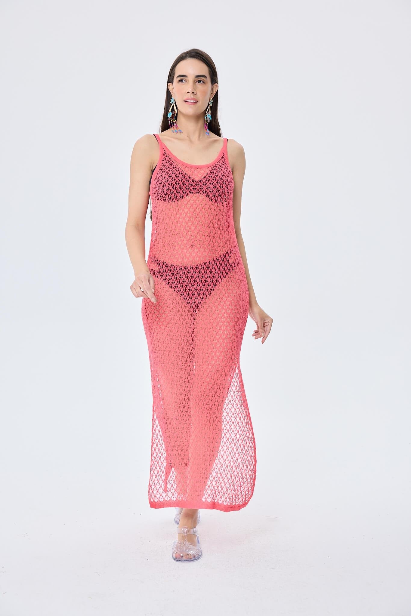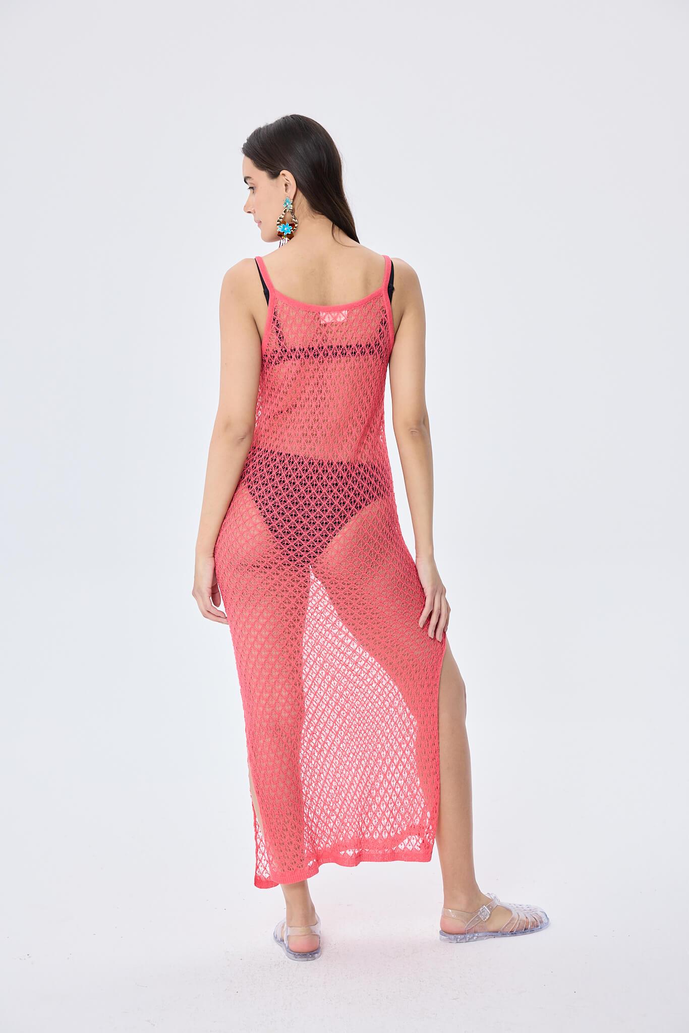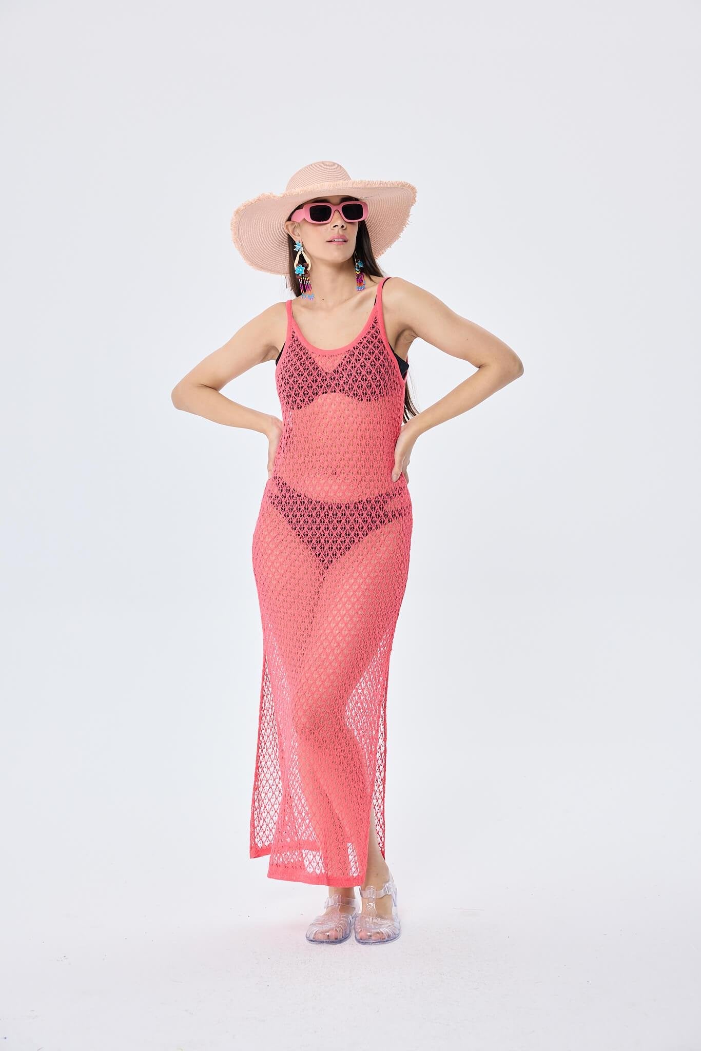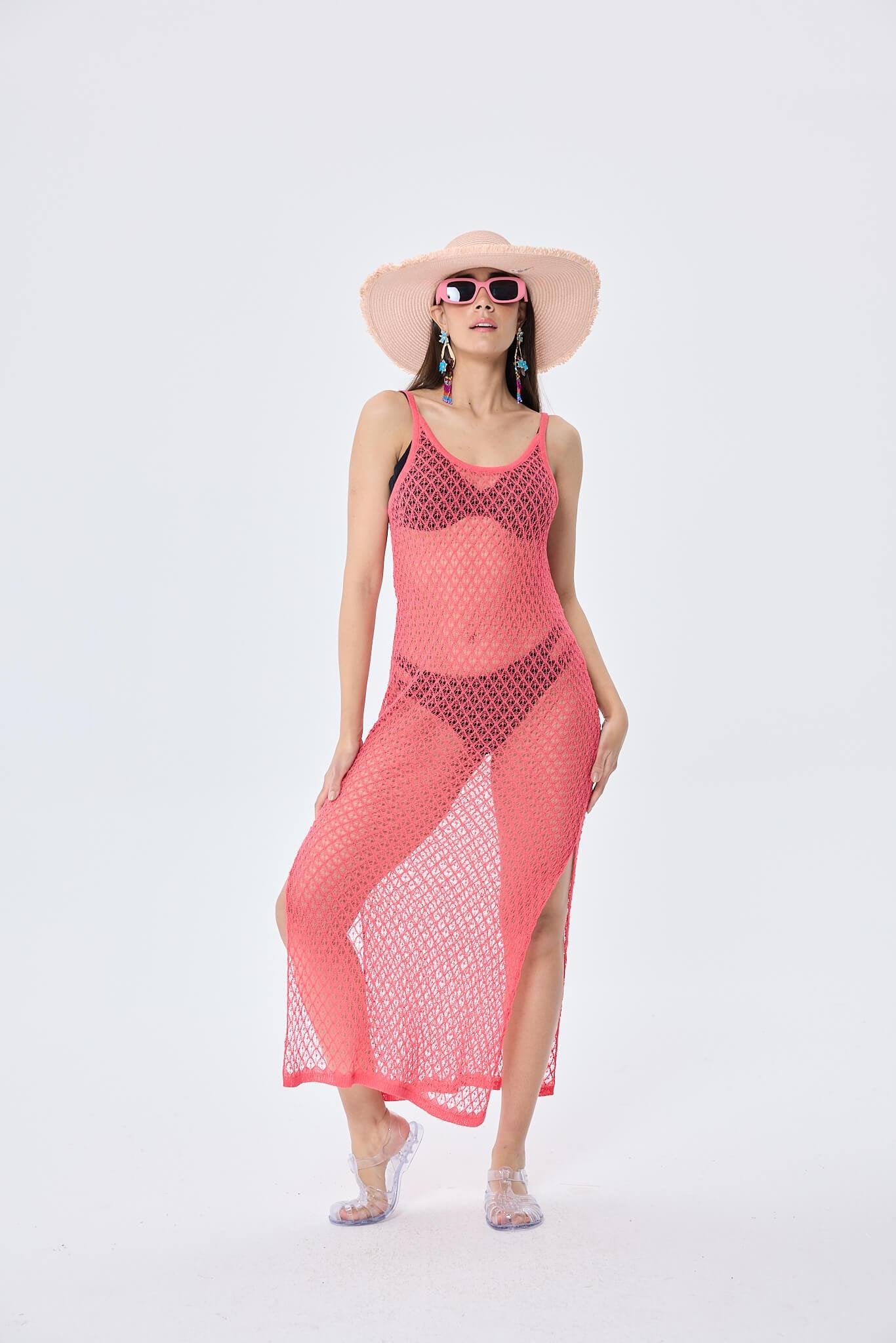 Angel Ajurlu Kadın Uzun Triko Plaj Elbisesi Koral