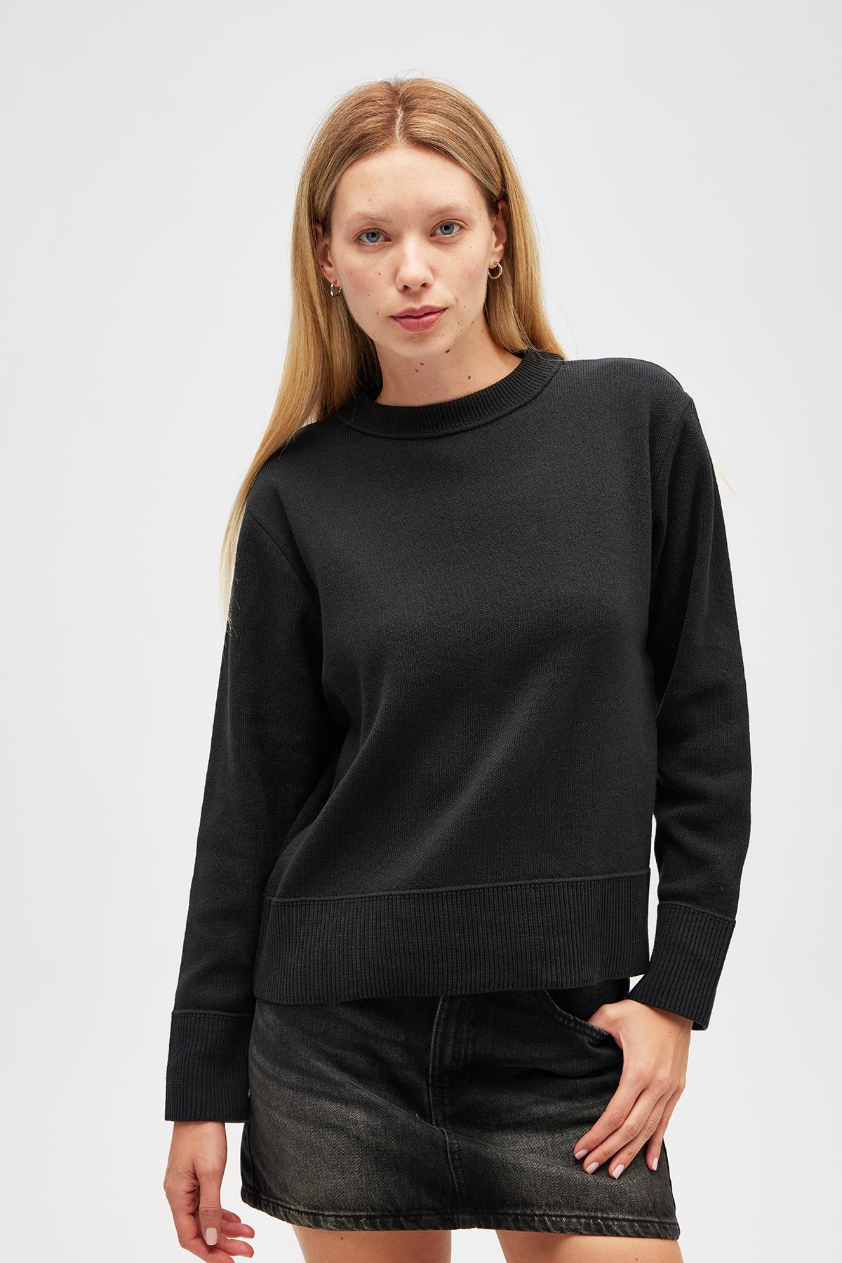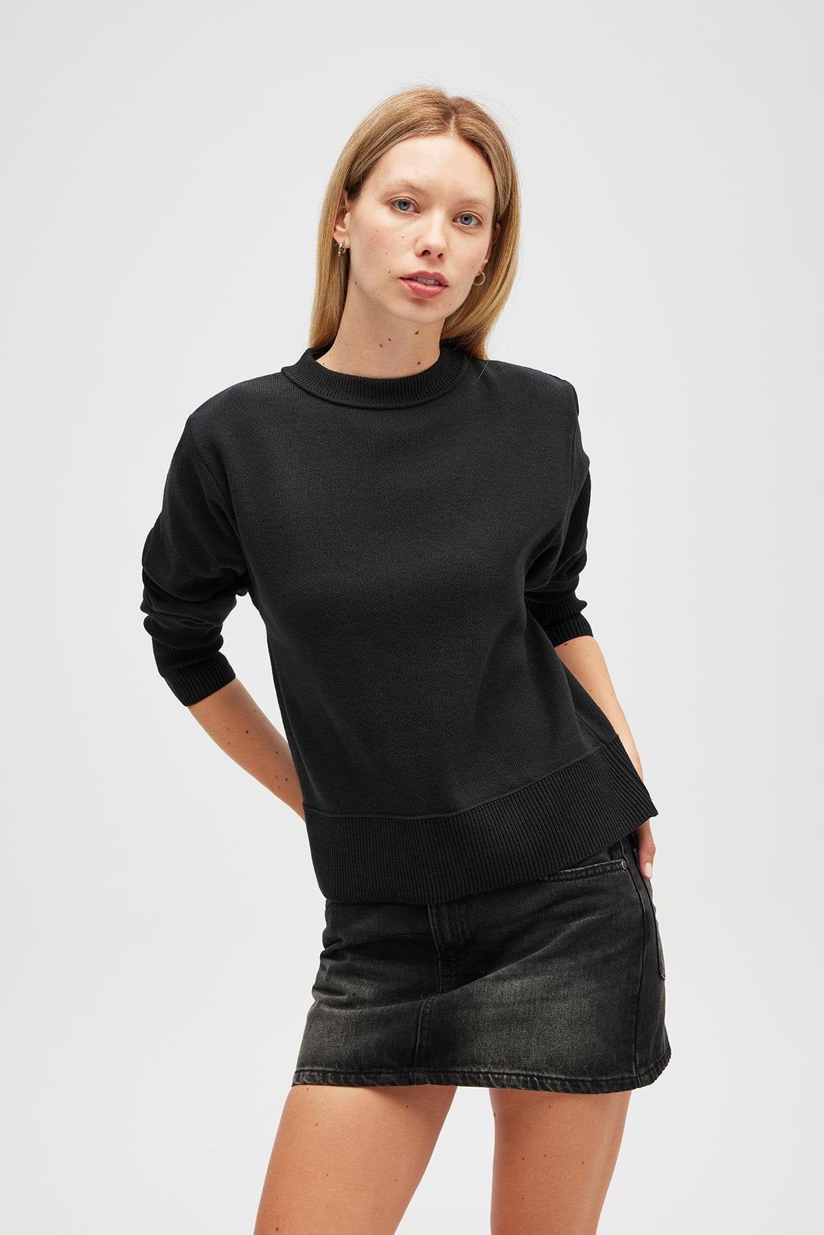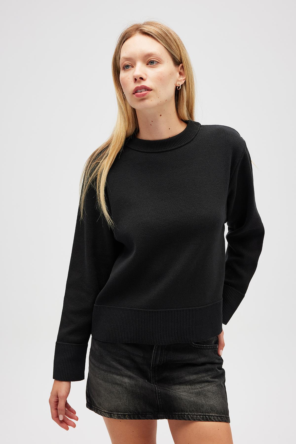 Risu, Düz örgü Kadın Mevsimlik Triko Bisiklet Yaka Kazak Siyah