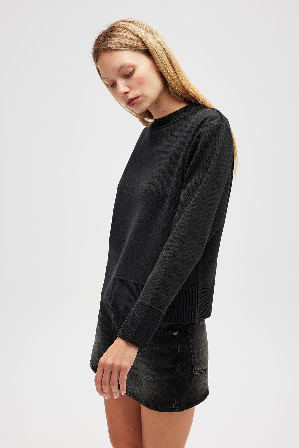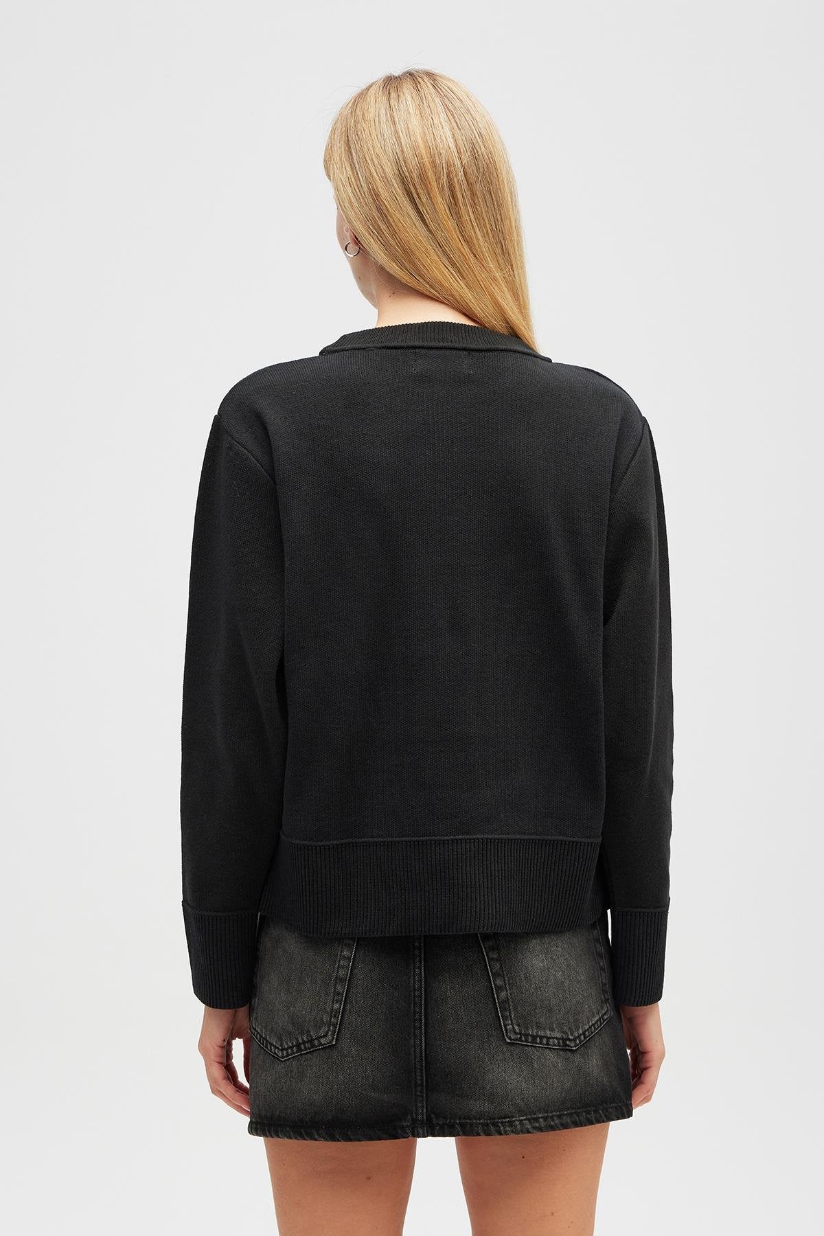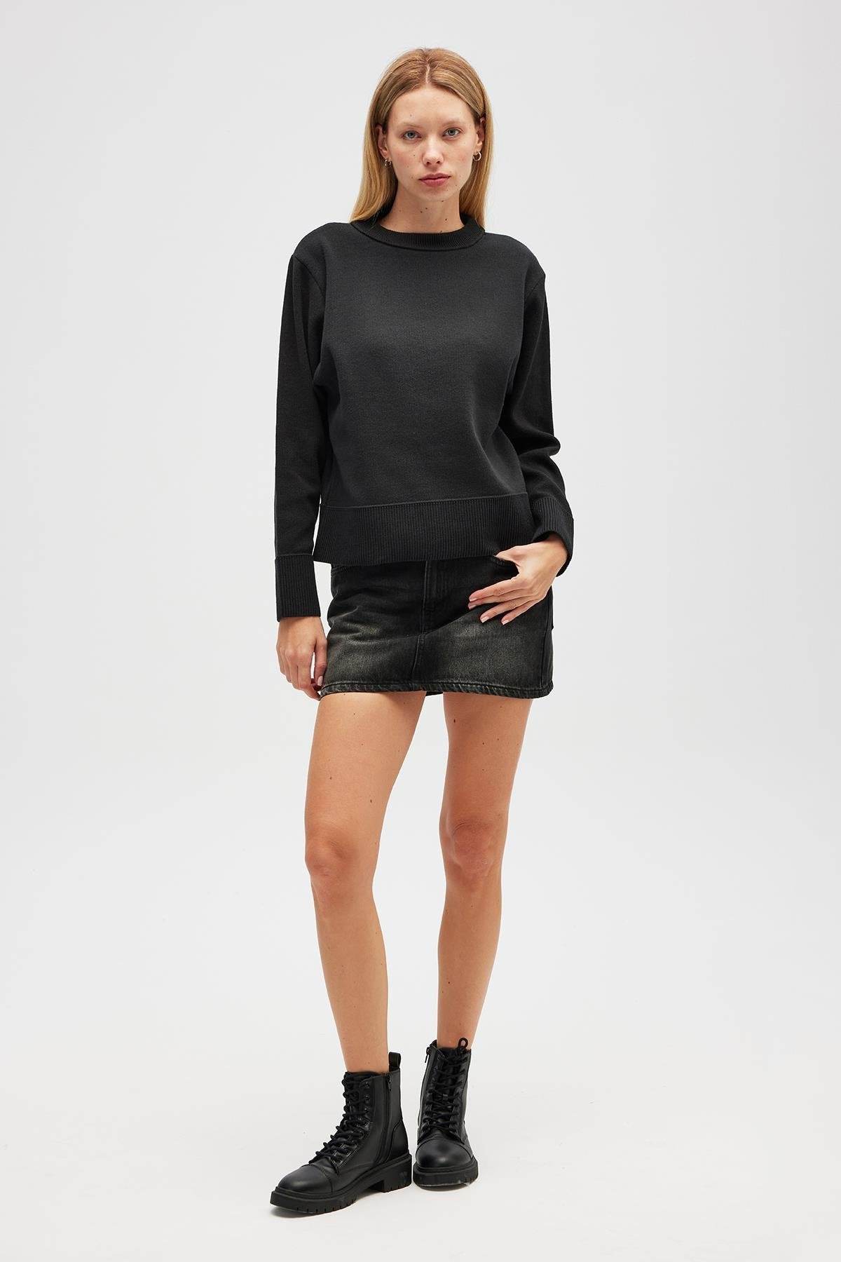 Risu, Düz örgü Kadın Mevsimlik Triko Bisiklet Yaka Kazak Siyah