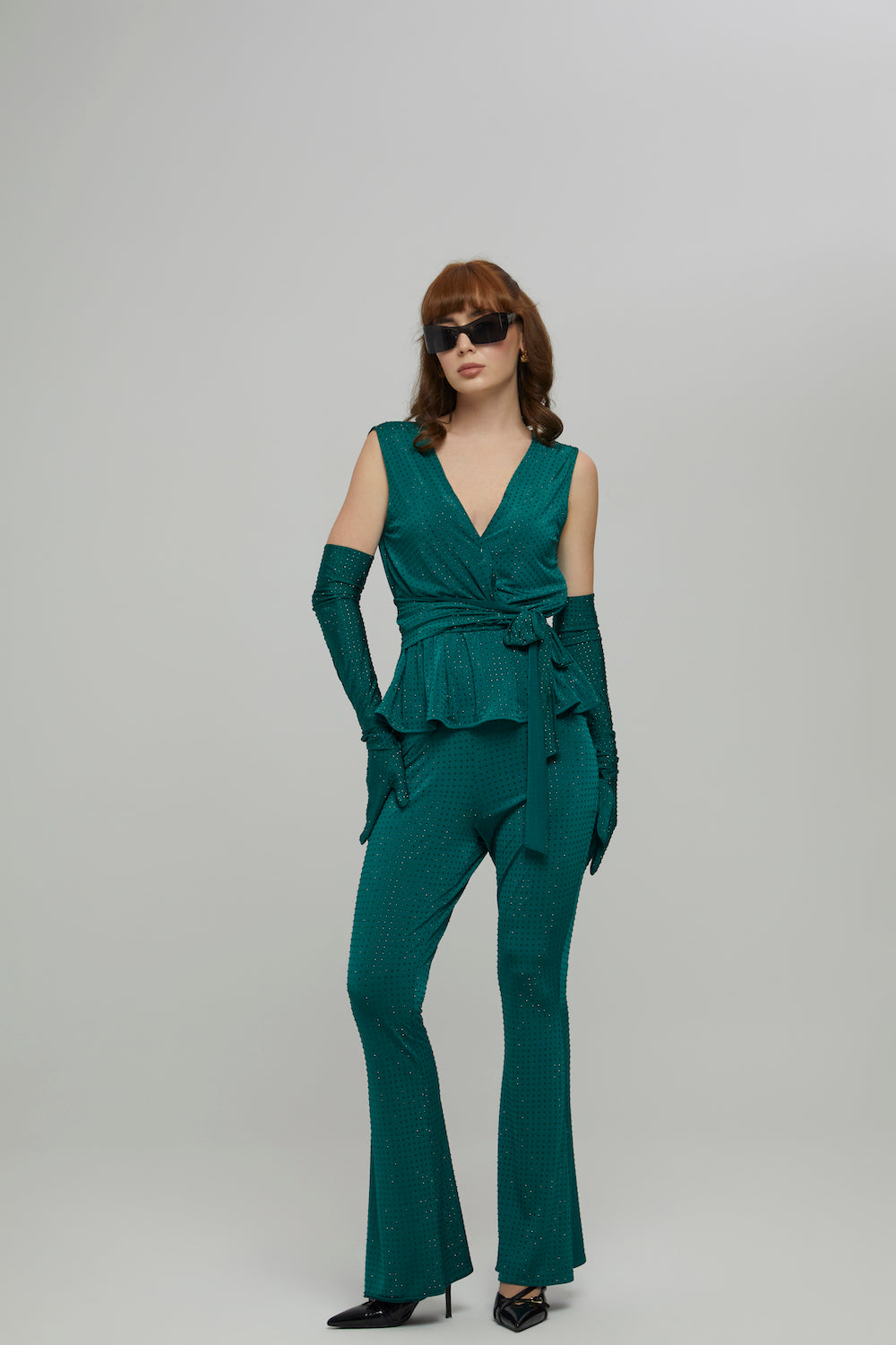 Zümrüt Yeşili Taşlı Pantolon Nicole