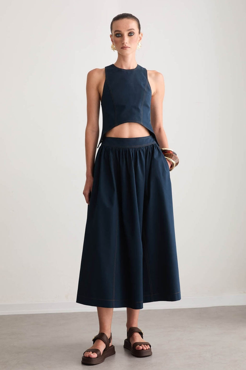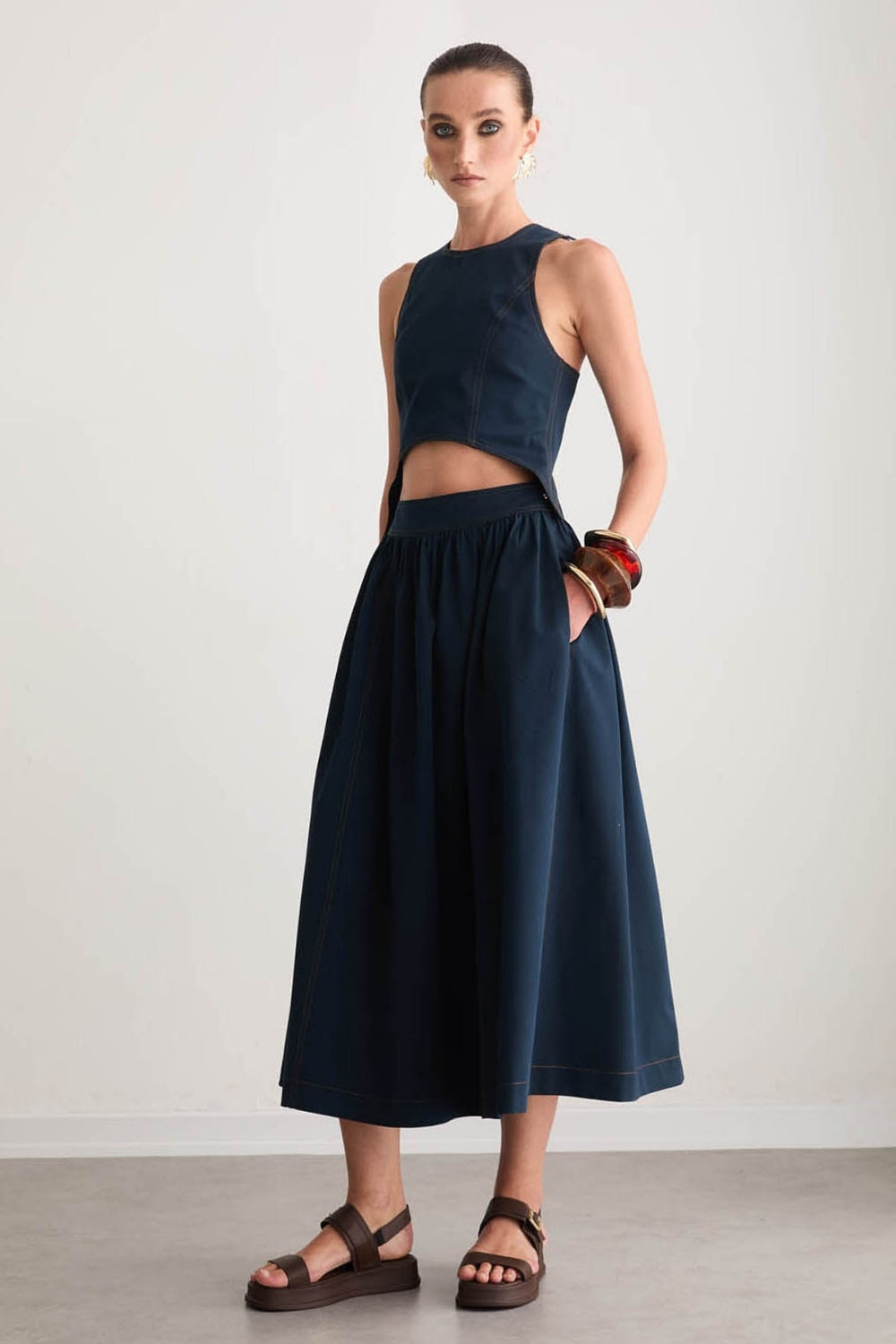 Corps Libre Büzgü Detaylı Lacivert Etek
