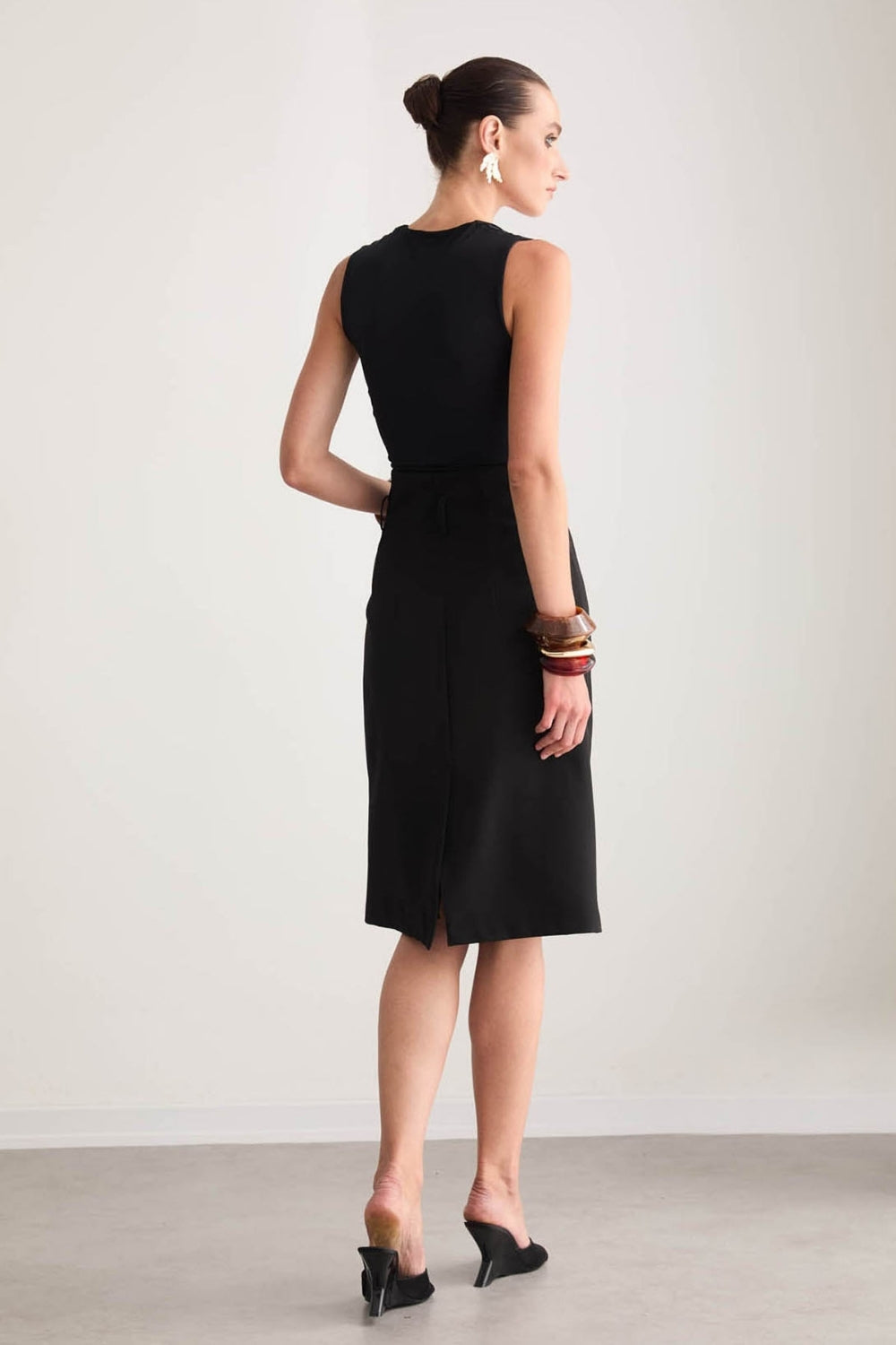 Grace Black Yüksek Bel Siyah Yırtmaçlı Etek
