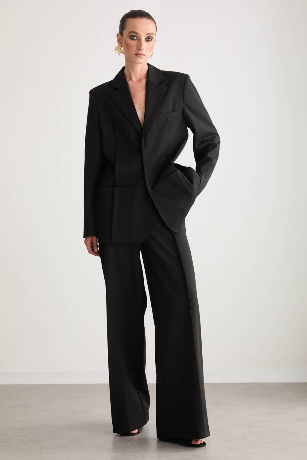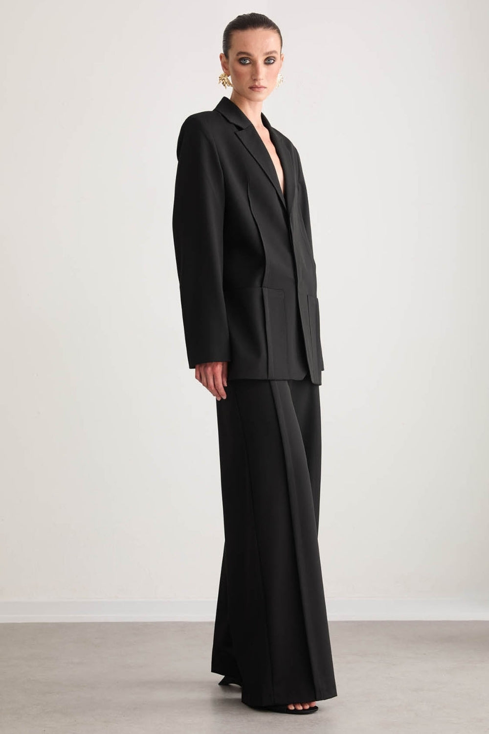 Jane Limited Edition Yüksek Bel Wide Leg Siyah Kumaş Pantolon