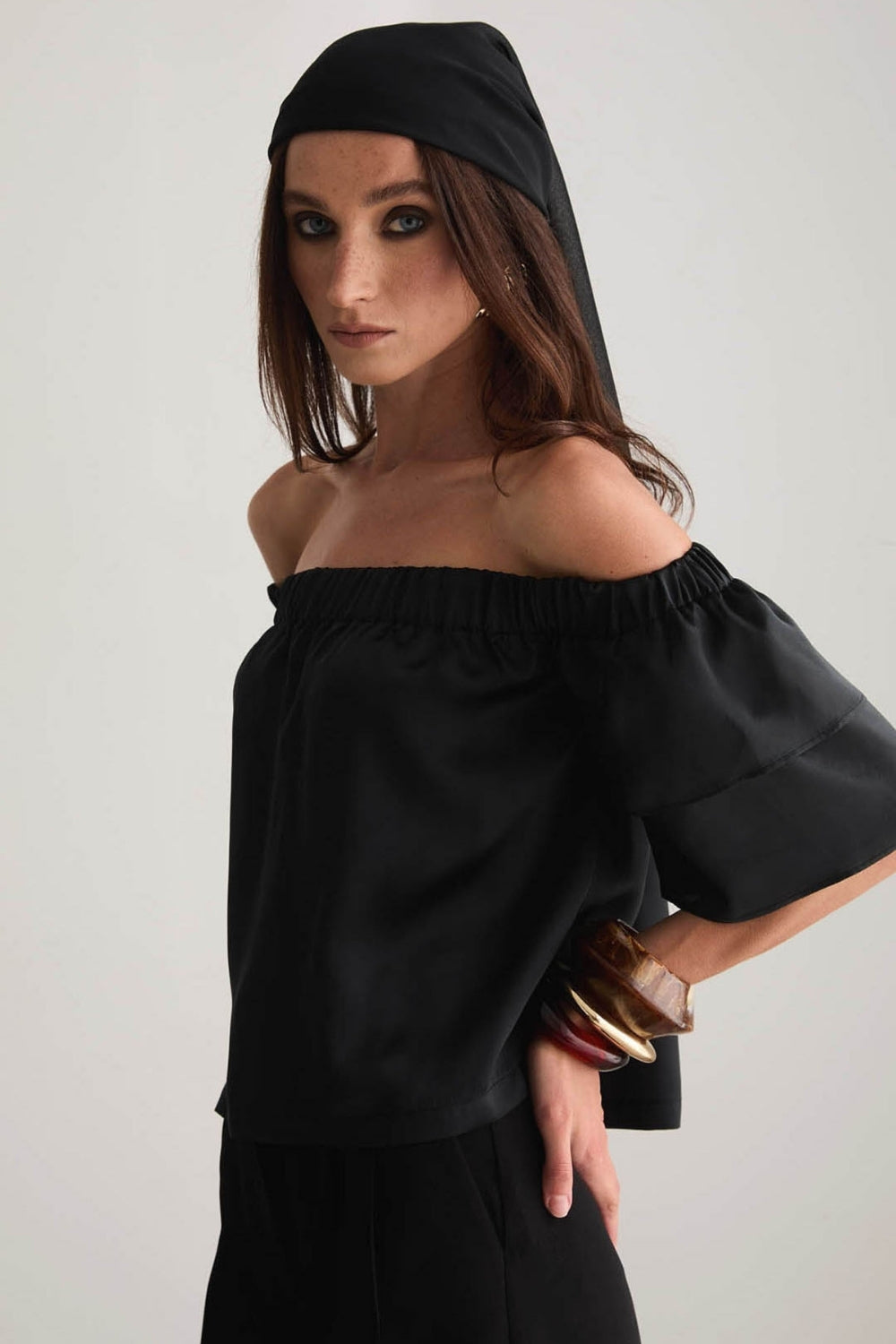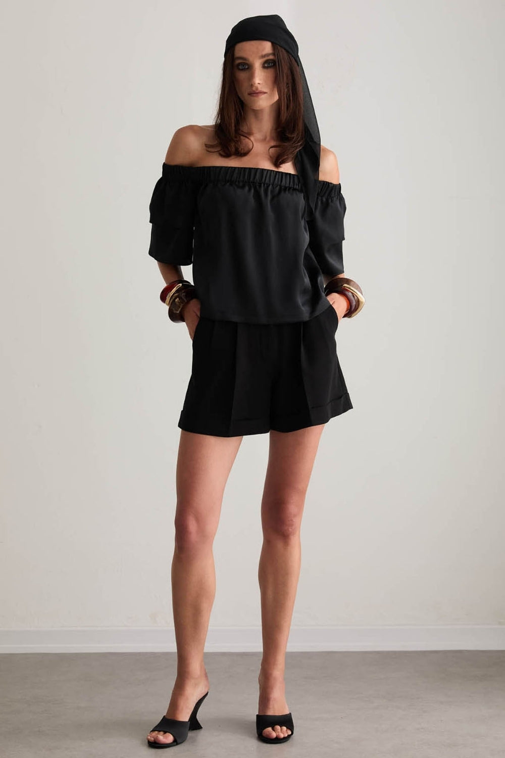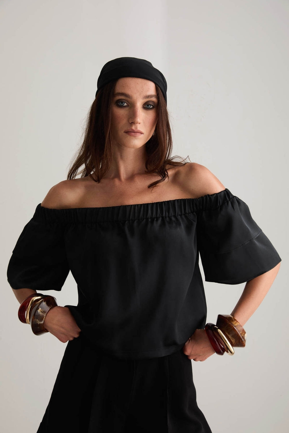 Noir %100 İpek Kayık Yaka Siyah Üst