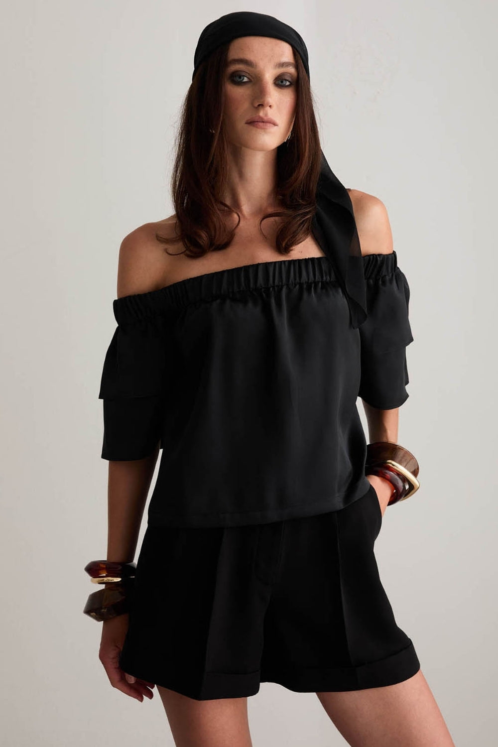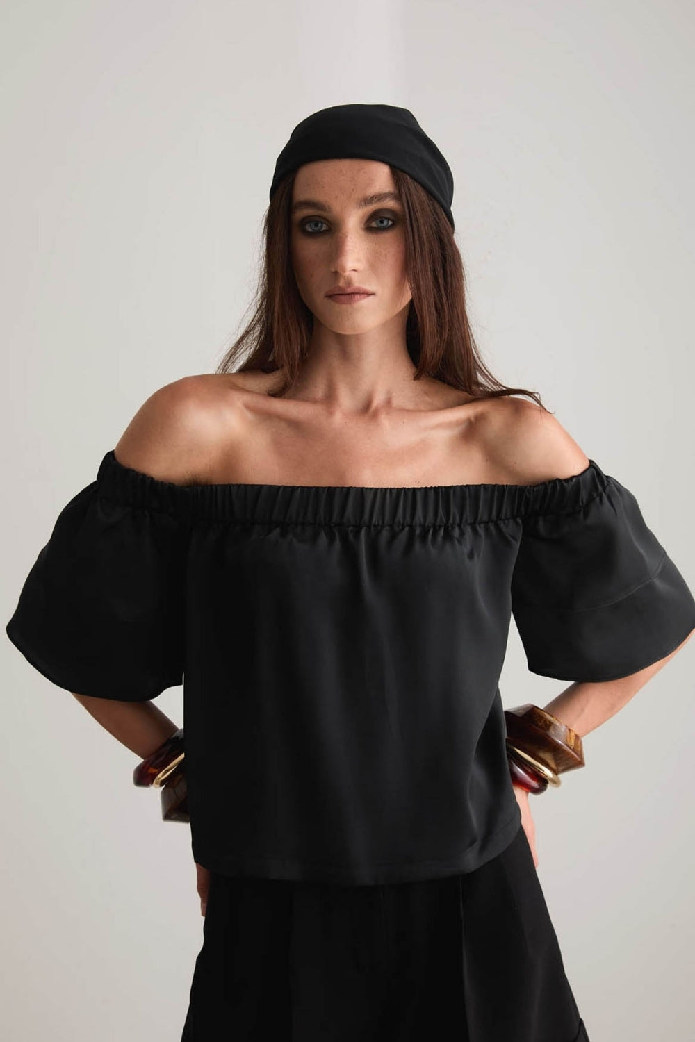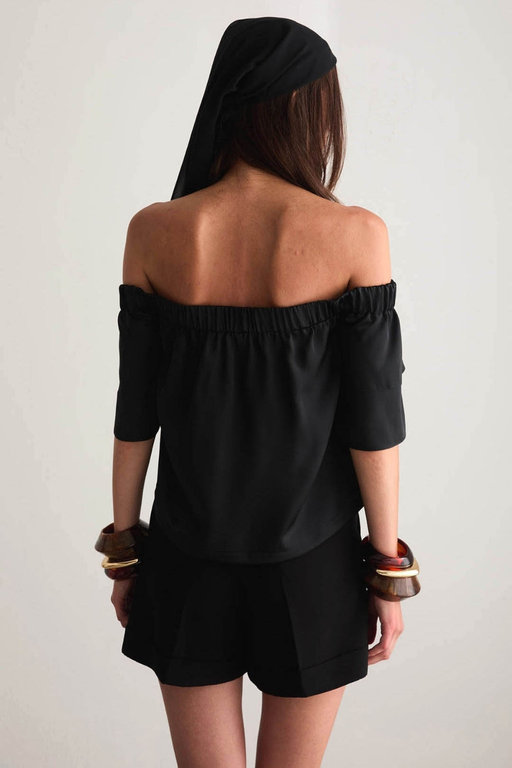 Noir %100 İpek Kayık Yaka Siyah Üst