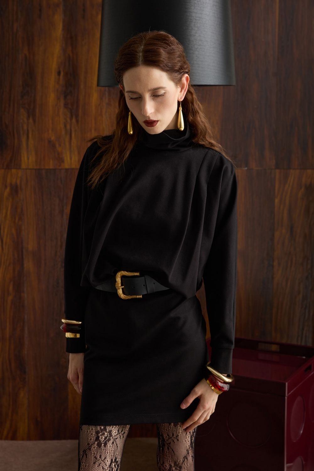 Belden oturan elbise.