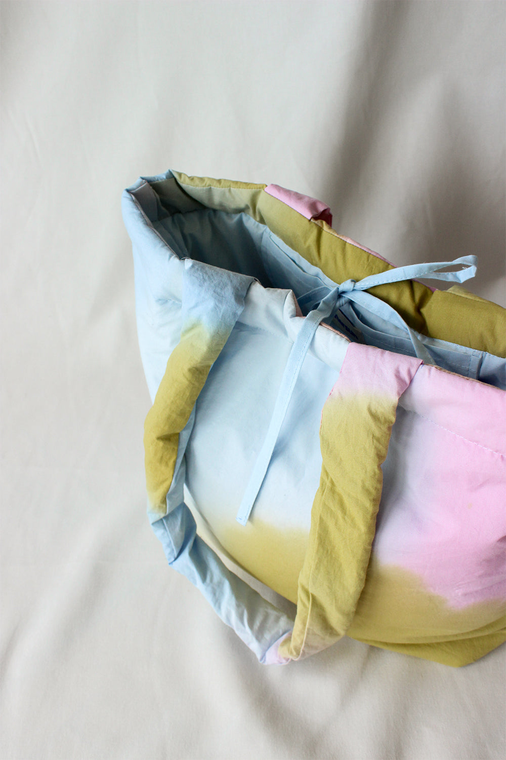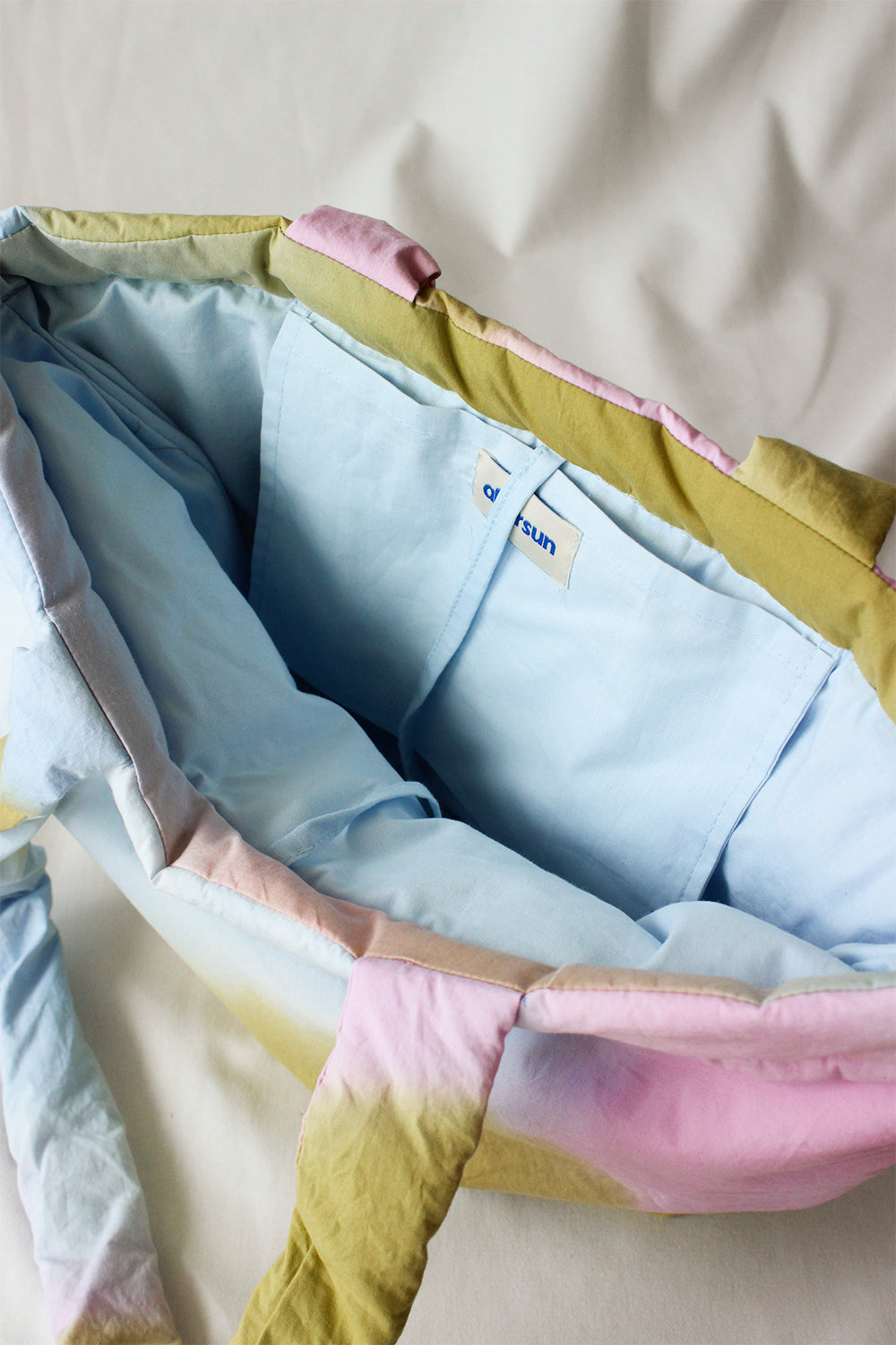 Aftersun’ın özel olarak geliştirdiği el boyama tekniğiyle tek tek uygulanır. Her parça, renklerin kumaş üzerinde doğal akışına izin verilerek ayrı ayrı çalışıldığı için birbirinden farklı karakterlerde ortaya çıkar.