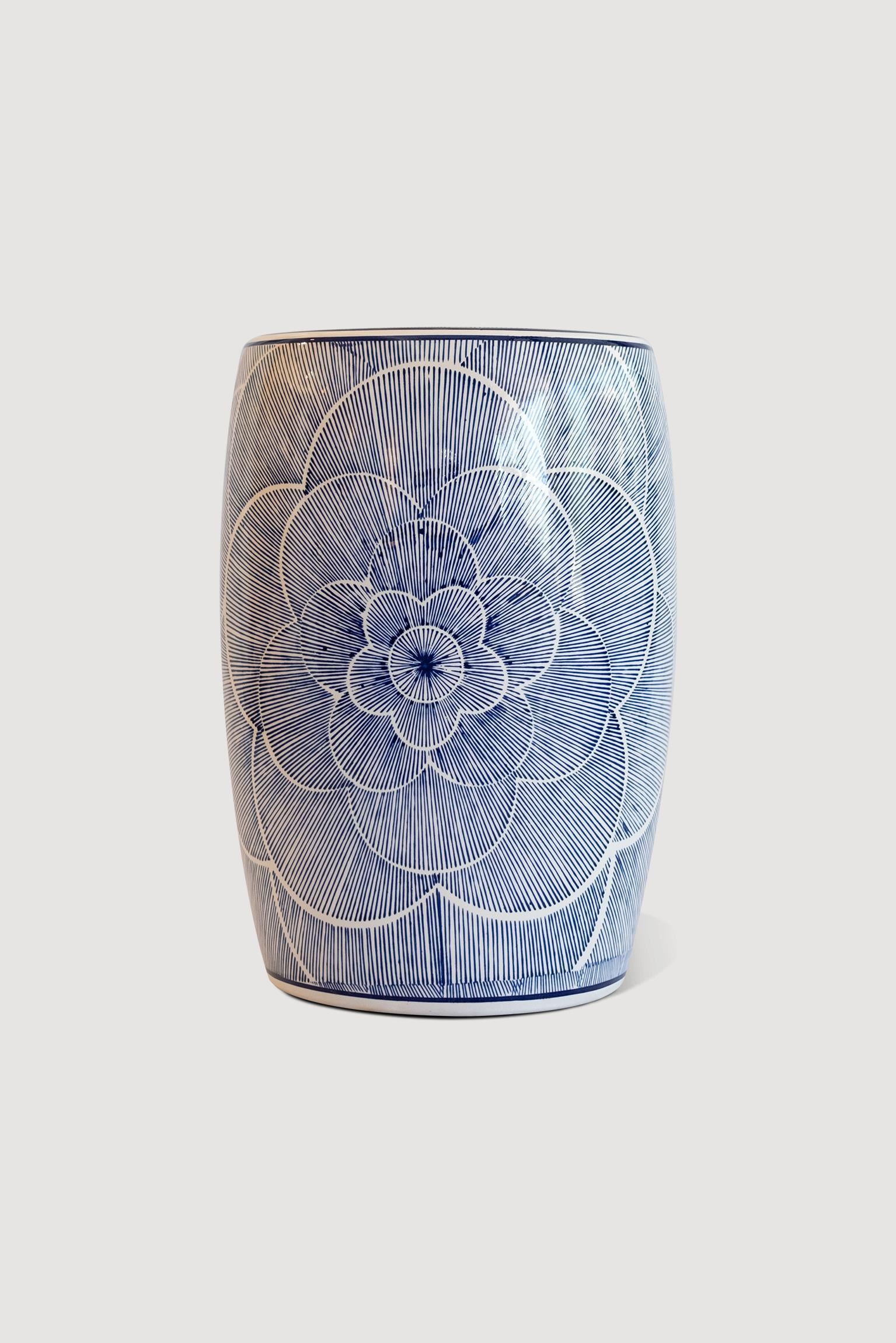 Mavi Beyaz Seramik Boyalı Tabure