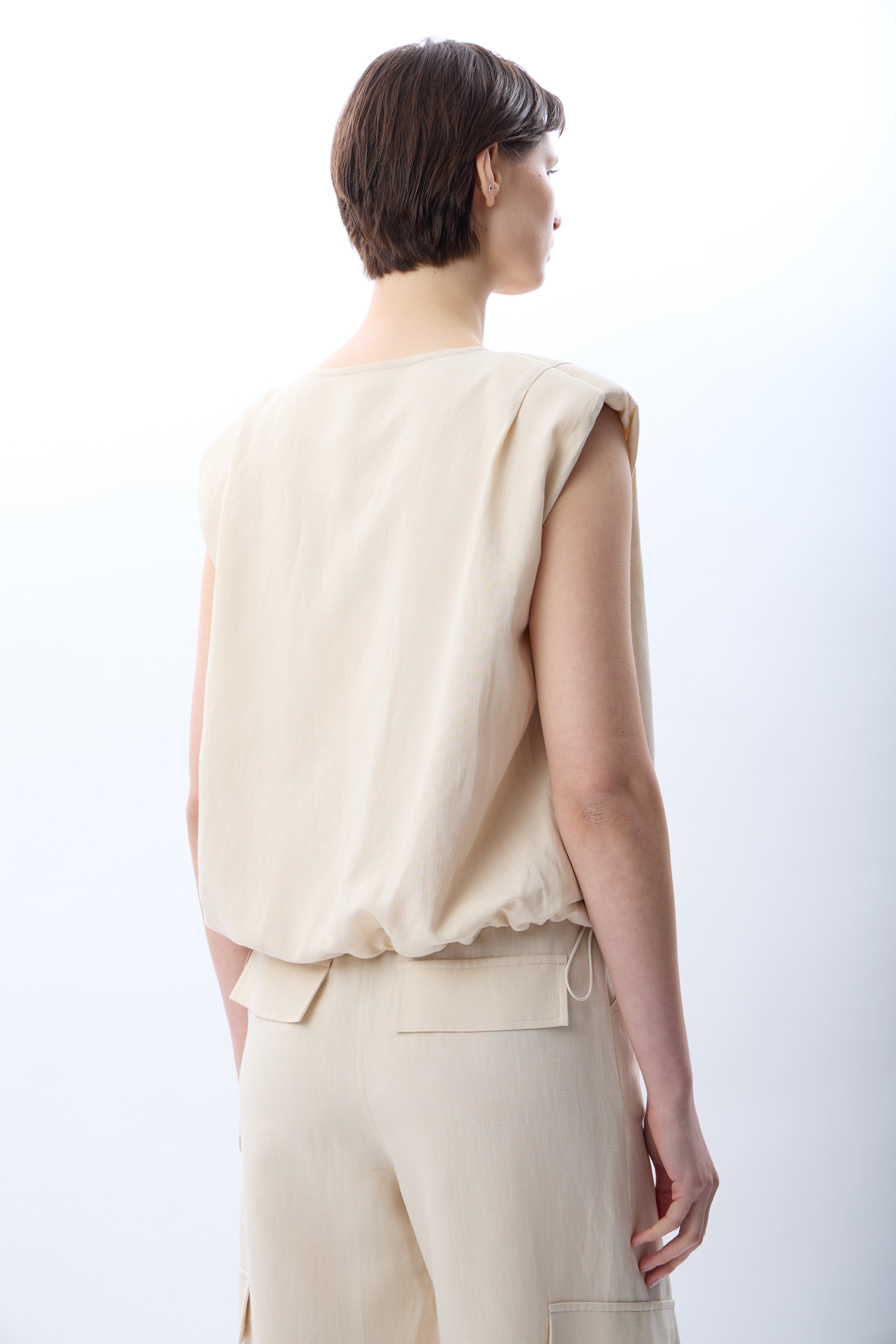 Büzgü Detaylı Bomber Yelek (Ekru)