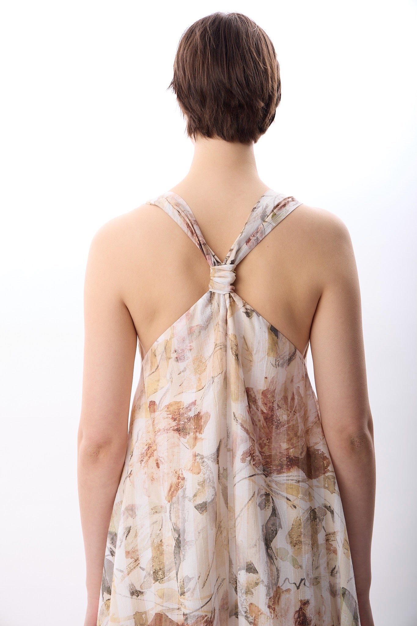 Suluboya Efektli Desenli Kadın Elbise – Tencel Karışımlı Kumaş, Çapraz Sırt Detaylı