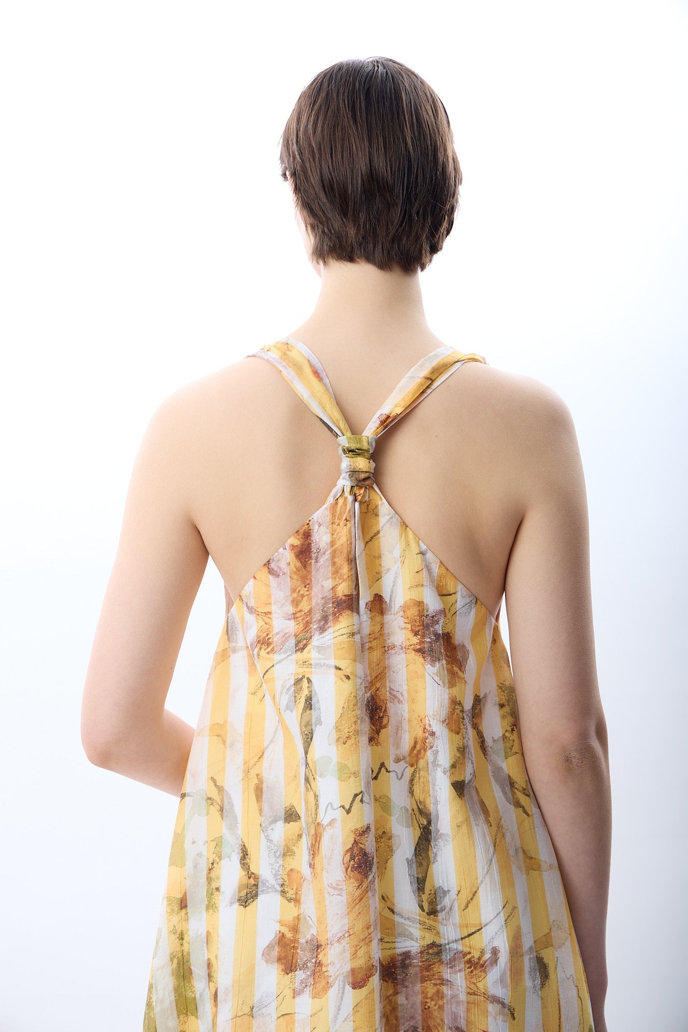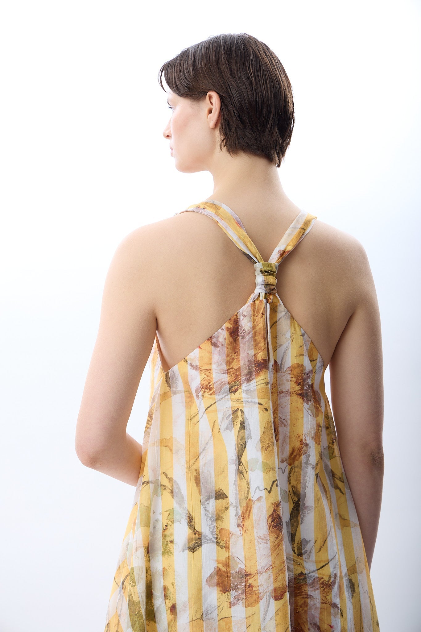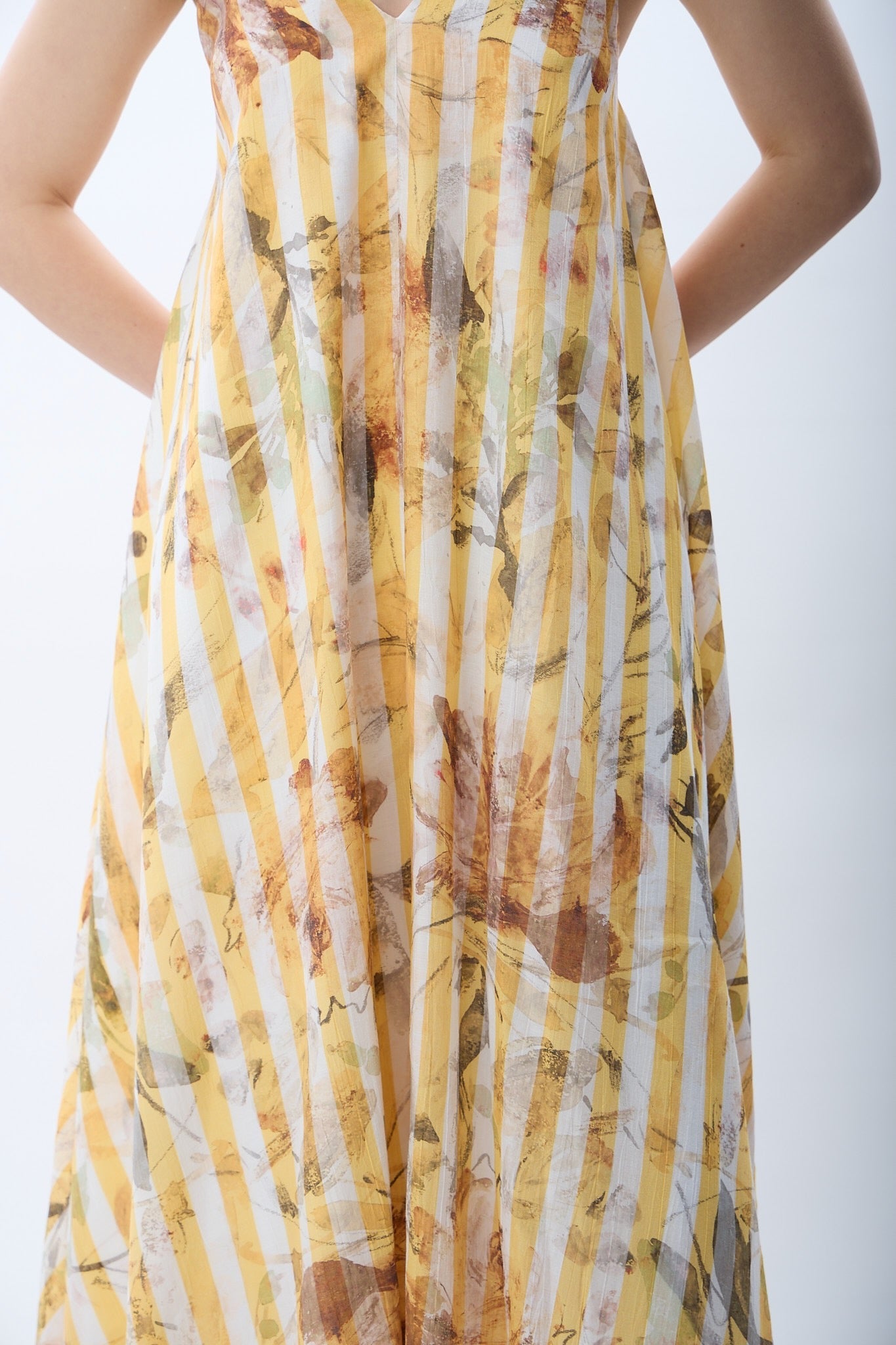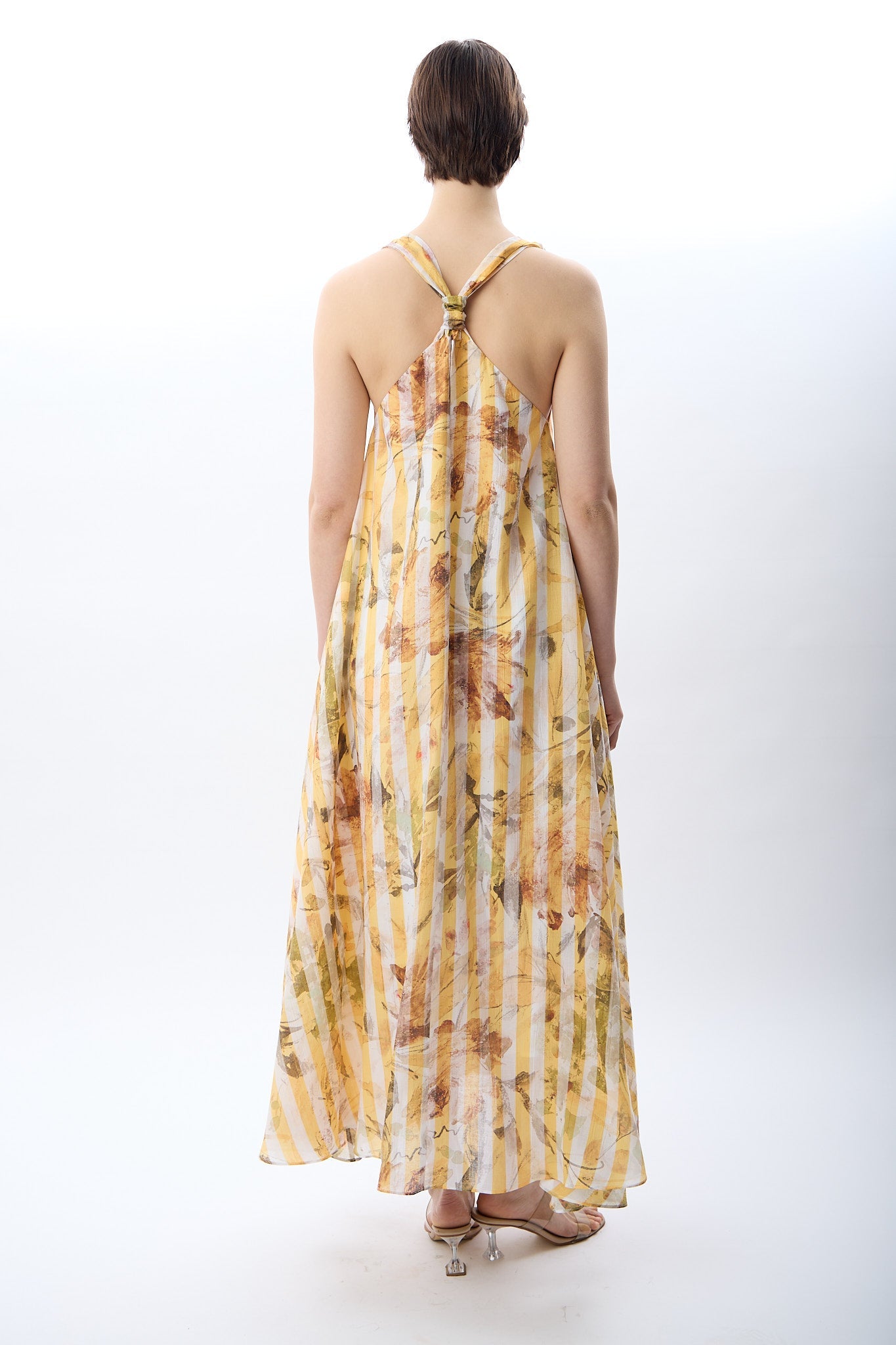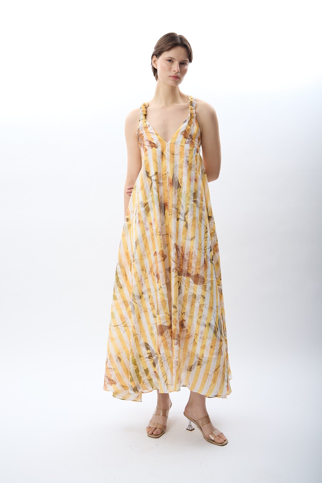 Desenli ve Dökümlü Maxi Elbise (Sarı)