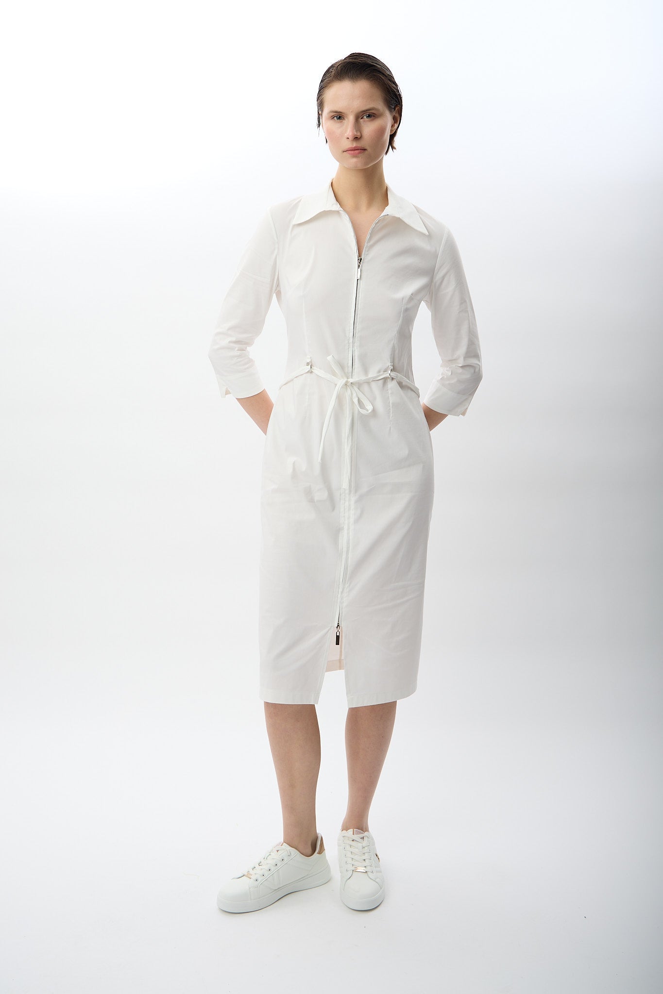 Gömlek Yaka Kadın Elbise – Pamuk Karışımlı Kumaş, Çift Yön Fermuarlı