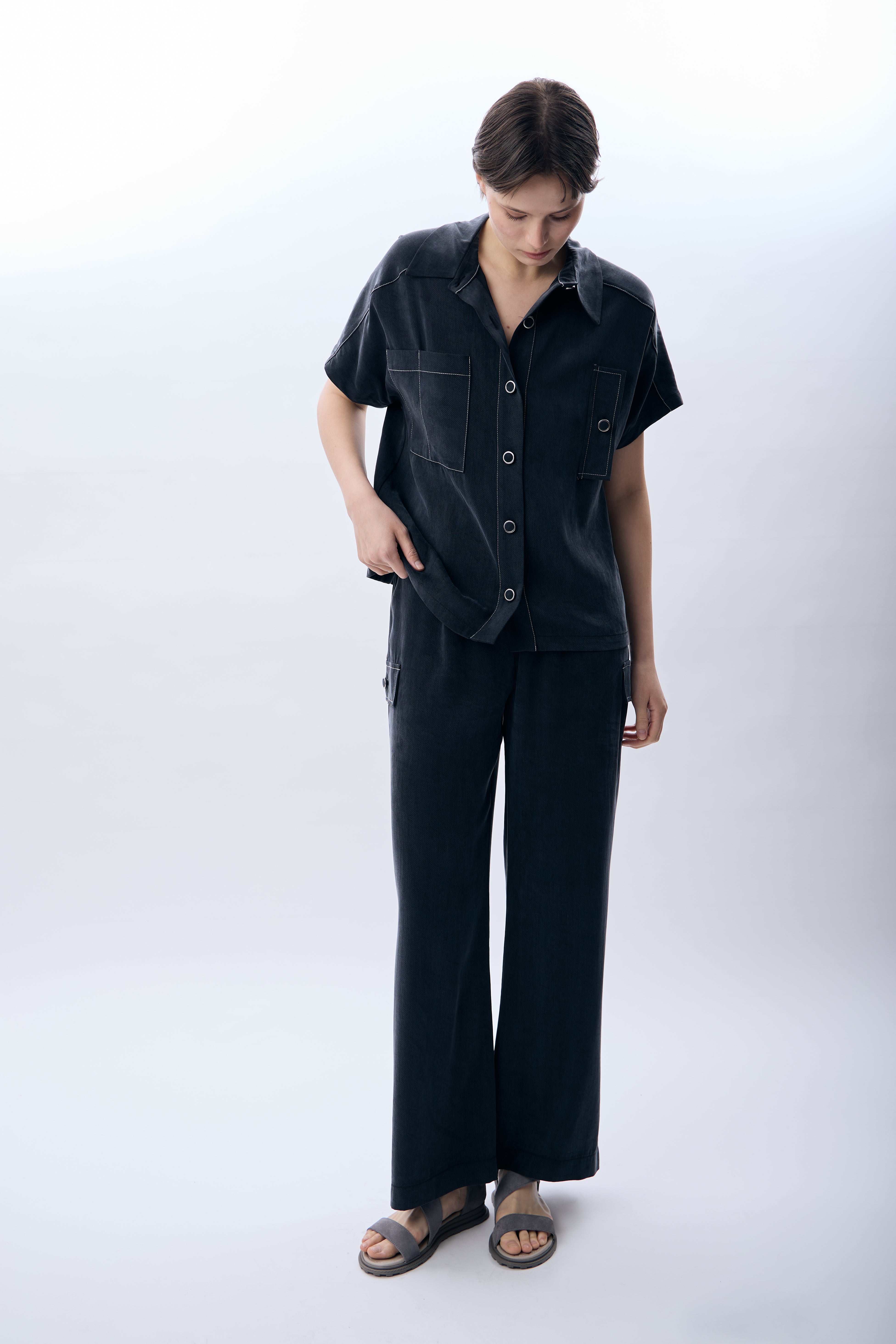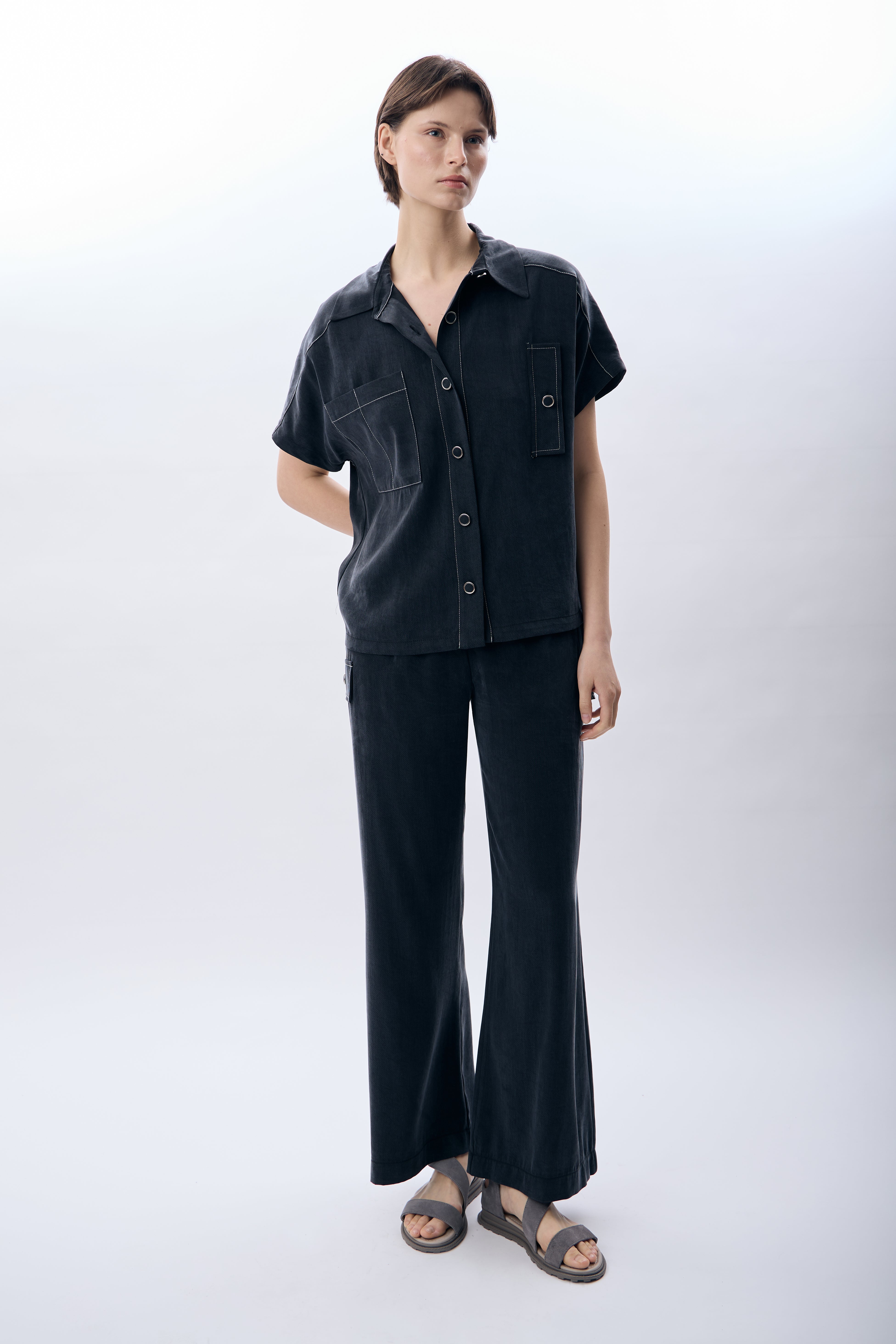 Kapaklı Cepli Düz Kesim Pantolon – %82 Liyosel, %18 PA