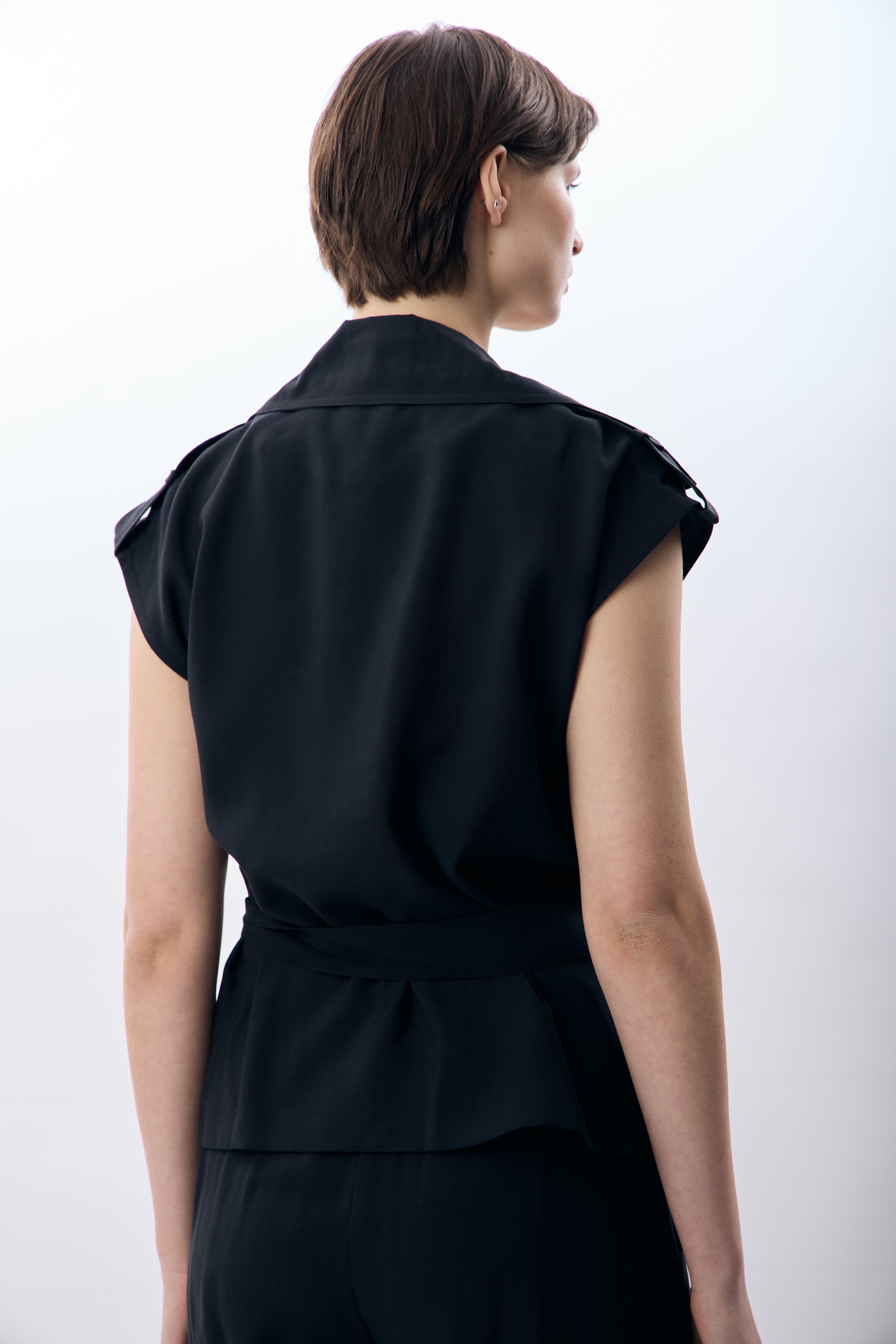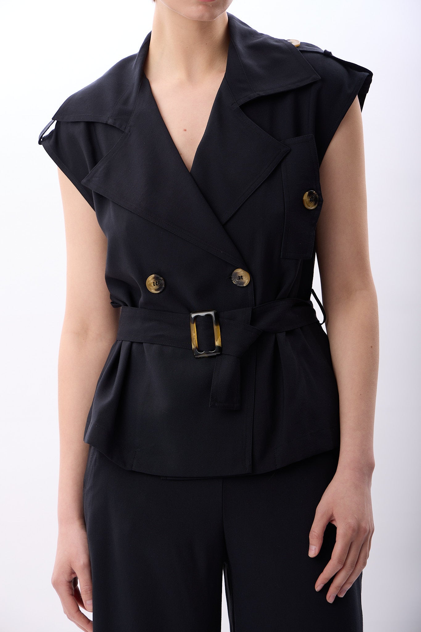 Model: Kruvaze yaka, şık düğmeli, cep detaylı, kemer aksesuarlı
