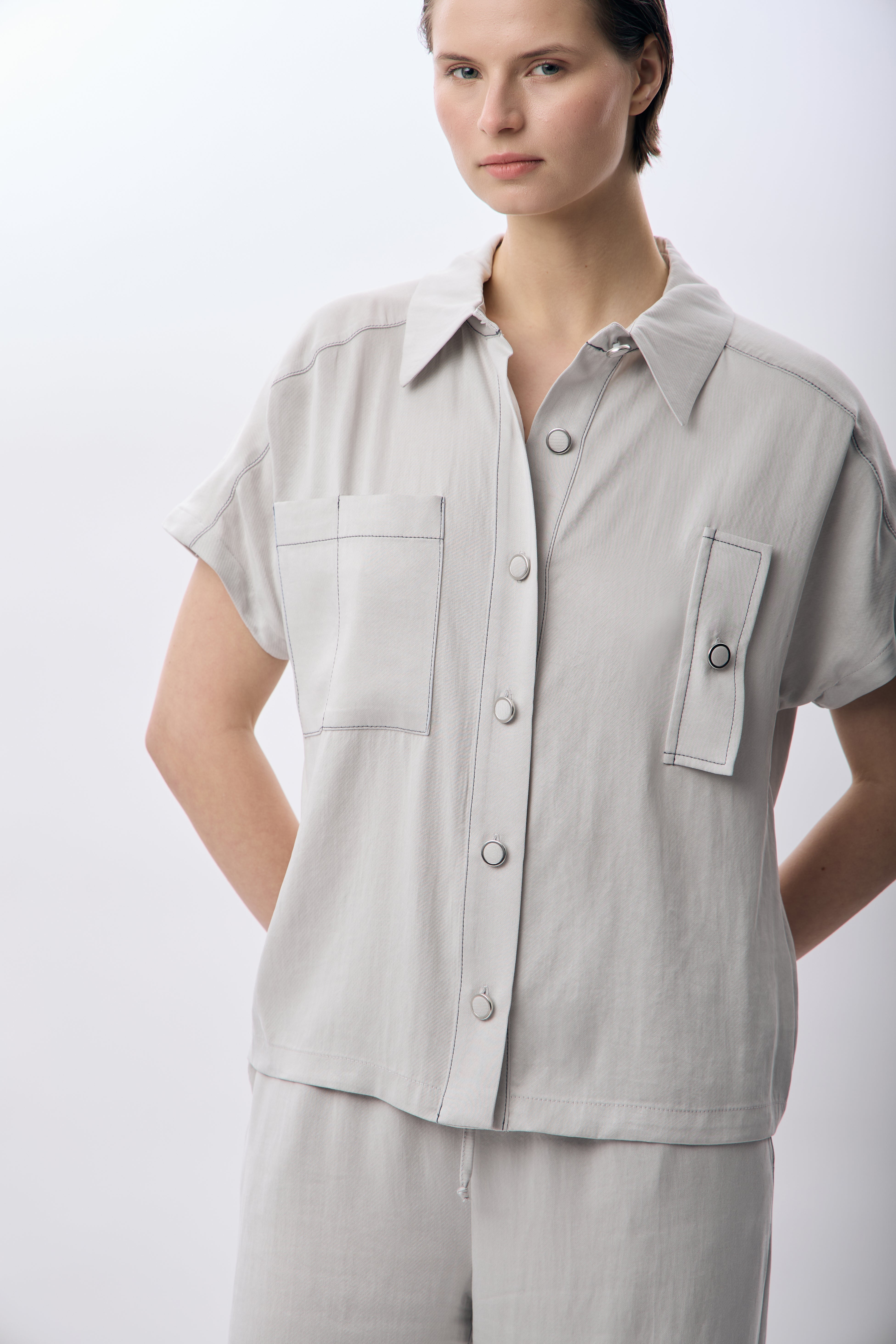 Kısa Kollu Gömlek Yaka Liyosel Gömlek – %82 Liyosel, %18 PA