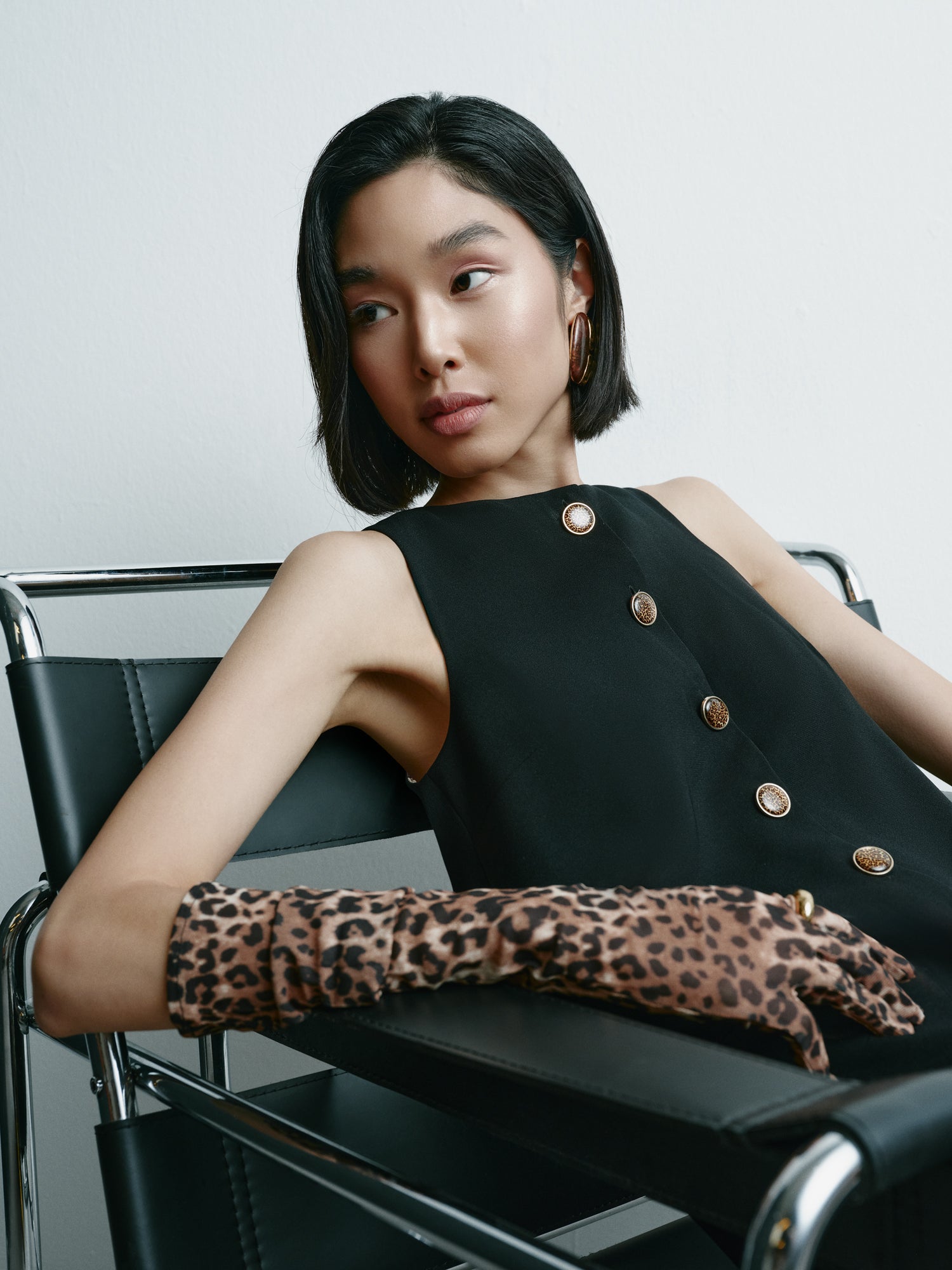 Zarif detayları ve dikkat çekici tasarımıyla öne çıkan Margot Dress, leopar metal düğme detayı ve iç kısmındaki saten-leopar astarıyla modern ve iddialı bir stil sunar. Kısa boy kesimi elbiseye dinamik bir görünüm kazandırırken, astarlı yapısı sayesinde konforlu bir kullanım sağlar.