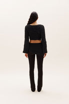 Özellikler: Bu uzun flare pantolon, şık ve modern bir tasarıma sahiptir. Kalçalardaki asimetrik plise detaylar, pantolona hacim kazandırırken vücutta mükemmel bir uyum sağlar ve zarif bir silüet oluşturur. Flare kesim, bacak boyunca genişleyen bir form yaratır, pantolona zarif bir hareket ve sofistike bir görünüm katar. Yüksek bel tasarımı, kusursuz bir uyum sağlar ve uzun, ince bir görünüm sunar. Hem günlük kıyafetler hem de özel etkinlikler için uygun olan bu pantolon, stil ve zarafeti zahmetsizce birleştirir.