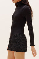 Özellikler: Bu uzun kollu, yüksek yaka mini elbise, zarif ve sofistike bir stil sunar. Yüksek yaka, soğuk havalar için mükemmel bir kombinasyon olan konfor ve şıklığı bir arada sunar, uzun kollarsa vücuda oturarak kusursuz bir uyum sağlar. Kalçada yer alan örme detay, elbiseye doku ve zenginlik katarak vücuda nazikçe oturur ve zarif bir silüet oluşturur. Kahverenginin sıcak tonu, elbiseye doğal bir cazibe katarken minimalist tasarım modern bir sofistike görünüm sunar. Hem gündüz hem akşam kullanımı için ideal olan bu elbise, stilinden ödün vermek istemeyenler için mükemmel bir seçimdir.