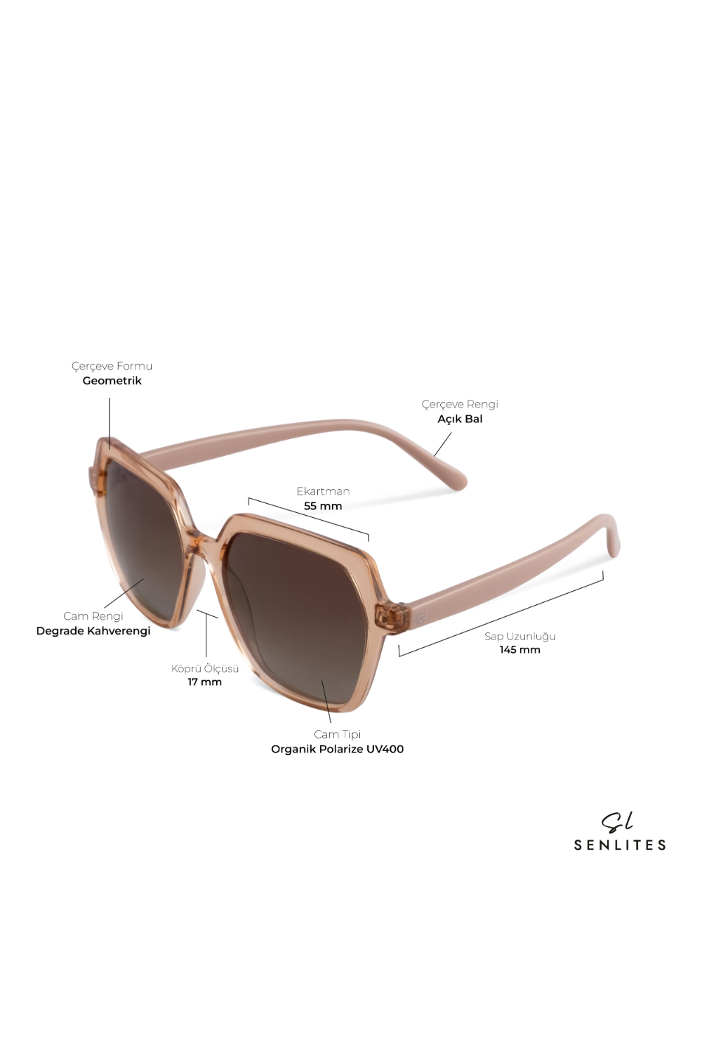 Roxana Ecru Kadın Şeffaf Kahverengi Degrade Polarize Altıgen Güneş Gözlüğü
