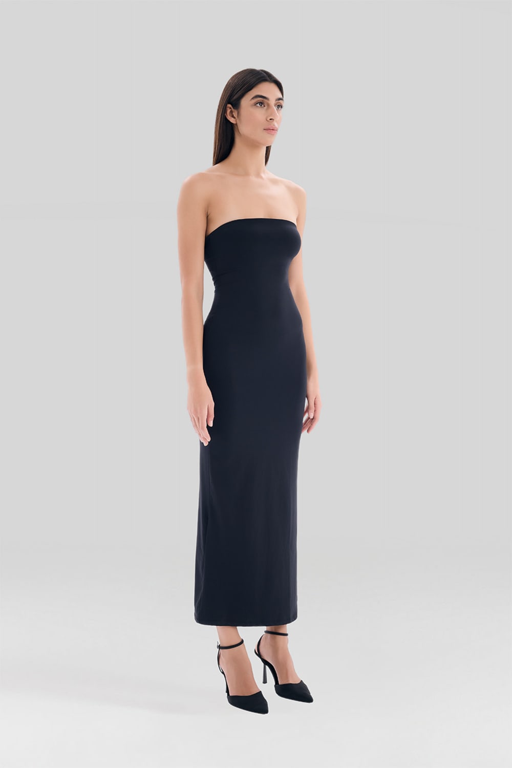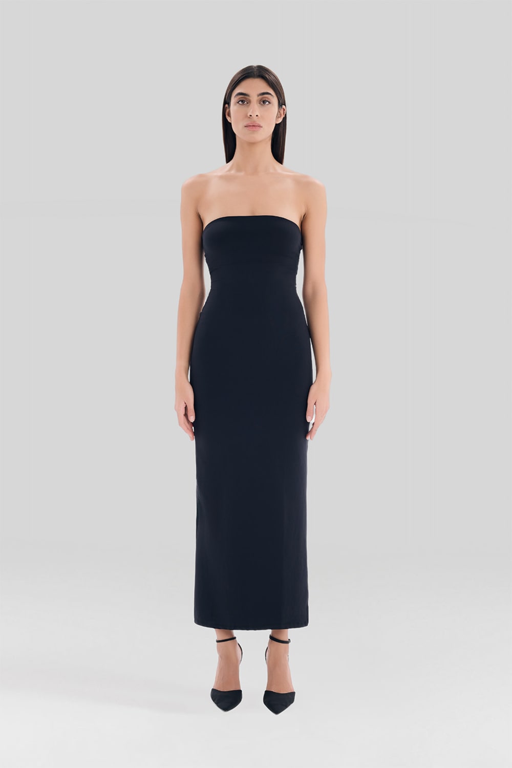 E 02 Elbise, straplez tasarımı ve midi boy kesimiyle zamansız bir şıklığın ifadesidir. Zarif silueti, sofistike detaylarıyla hem anı yaşatan hem de geleceğe iz bırakan bir parça olarak koleksiyonumuzun en özel tasarımlarından biridir. Kaliteli kumaşı ve akıcı formu, her dokunuşta konforu ve estetiği bir araya getirir.