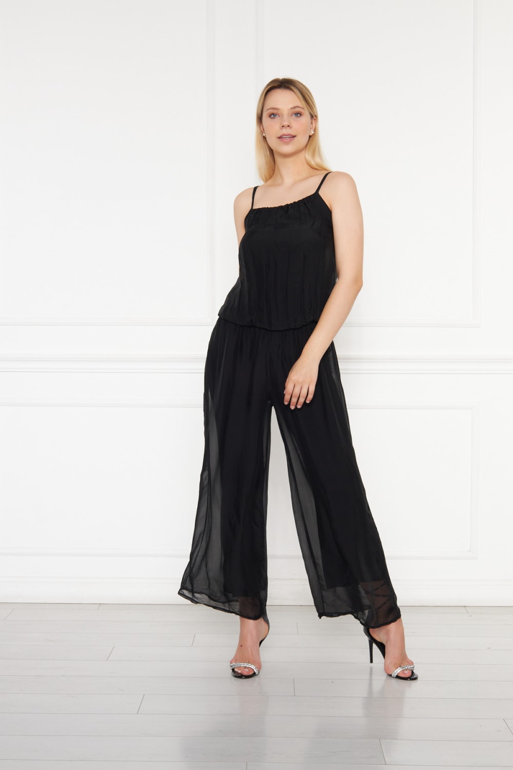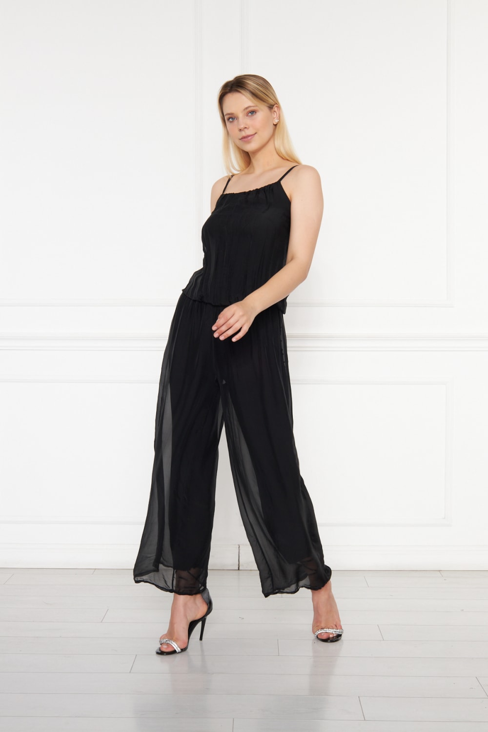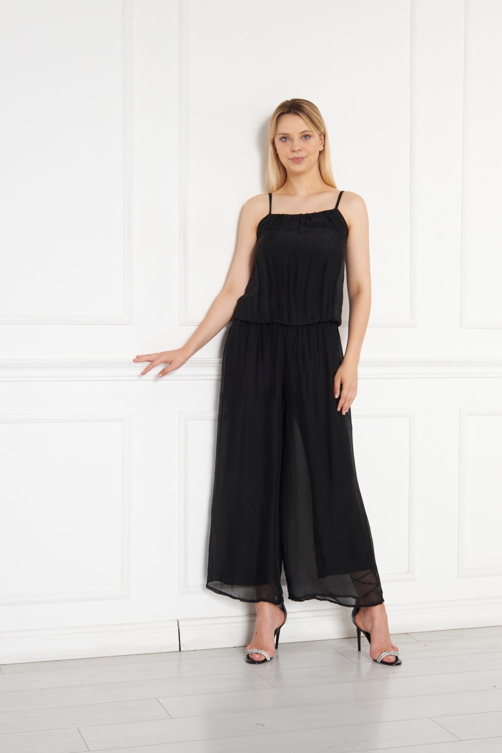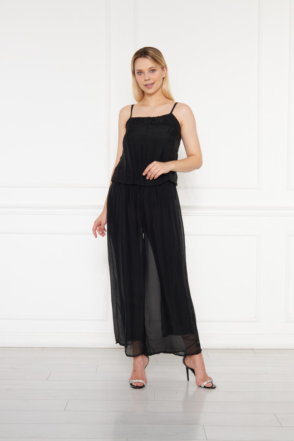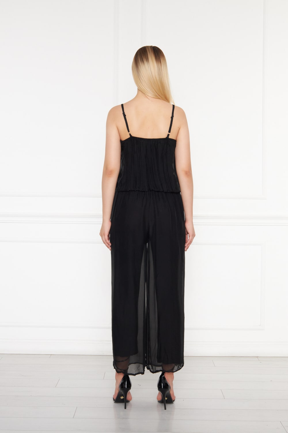Saf İpek Şifon Siyah Tulum