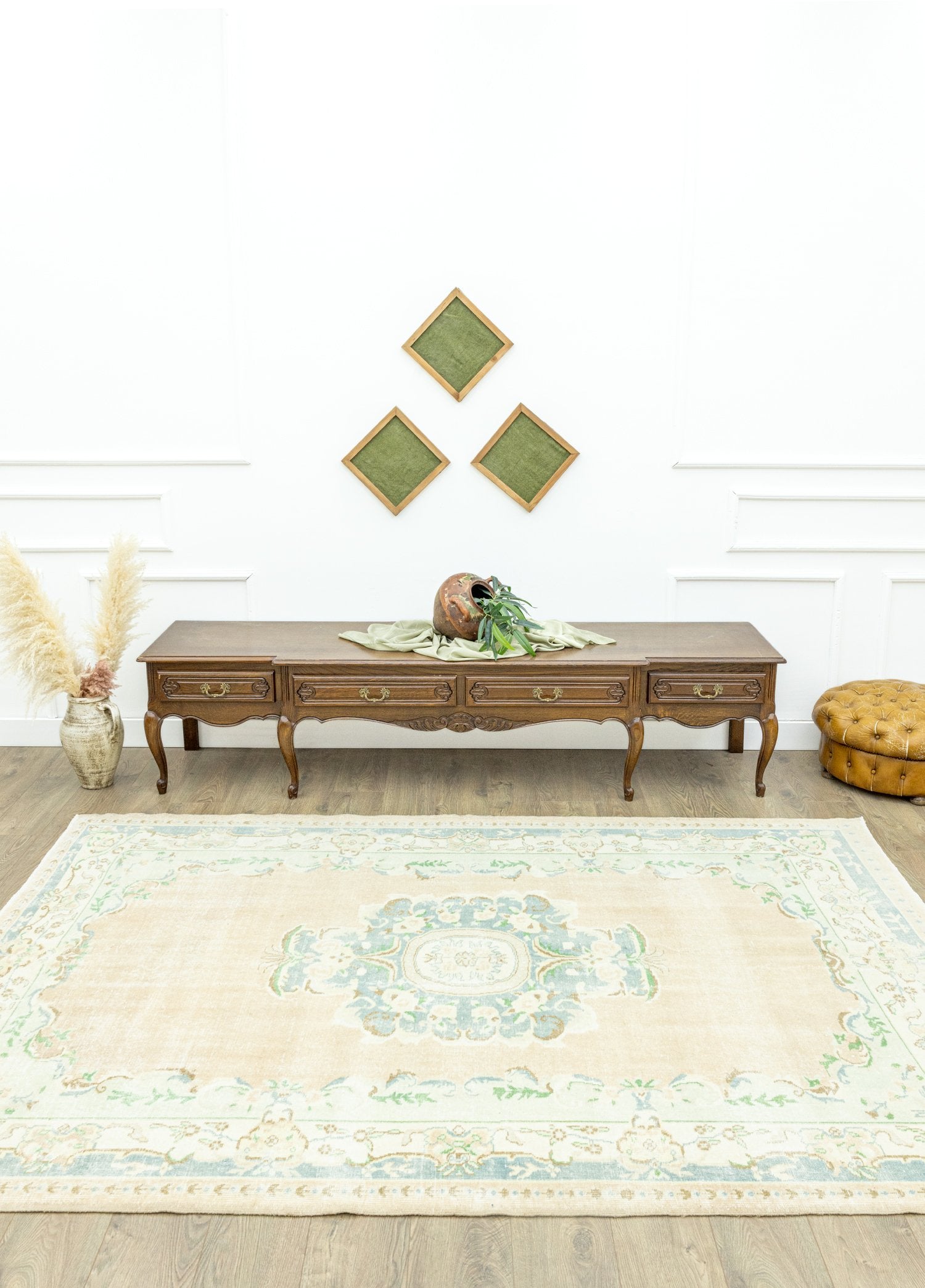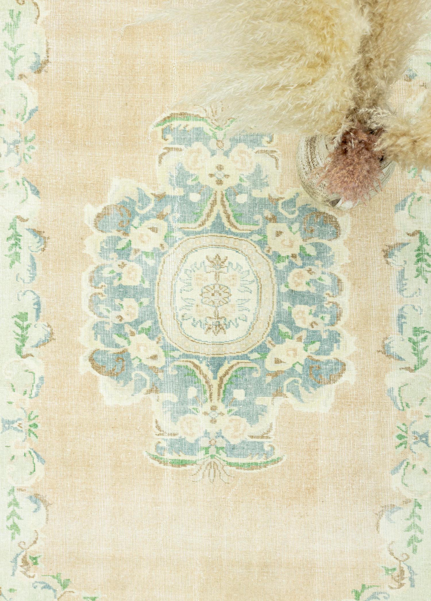Soho Antiq halı modellerinin içerisinde dilediğiniz konsepte uygun tasarımı bulmak mümkün! Soho Antiq halı modellerimiz tamamen doğal yün ile pamuktan oluşur ve tamamı el dokumasıdır. Halı, 1 ile 3 cm arası bir kalınlığa sahiptir ve boyu 188 x 270 cm’dir. Halı kataloğumuzda bulunan çeşitli renk seçeneklerinden biri olan krem halının ana rengidir. Ayrıca halı modelindeki diğer renkler yeşil, bej ve çok renklidir. Soho Antiq, tarihi ve yöresel dokunuşlarıyla halı modellerini bir üst seviyeye taşır. Halı üzerindeki desenler floral desen denilen tasarımlara sahiptir. Isparta yöresinde dokunmuş olan bu halımız 1970’lerin dokunuşlarına sahiptir ve  dokuma sonrası halıya uygulanan tıraşlama işlemi sayesinde hav yüksekliği minimum seviyeye indirilmiştir, bu da halıya pürüzsüz ve modern bir görünüm kazandırmıştır. Soho Antiq halılarımız tamamen özel el dokuma teknikleri ile tasarlanır.