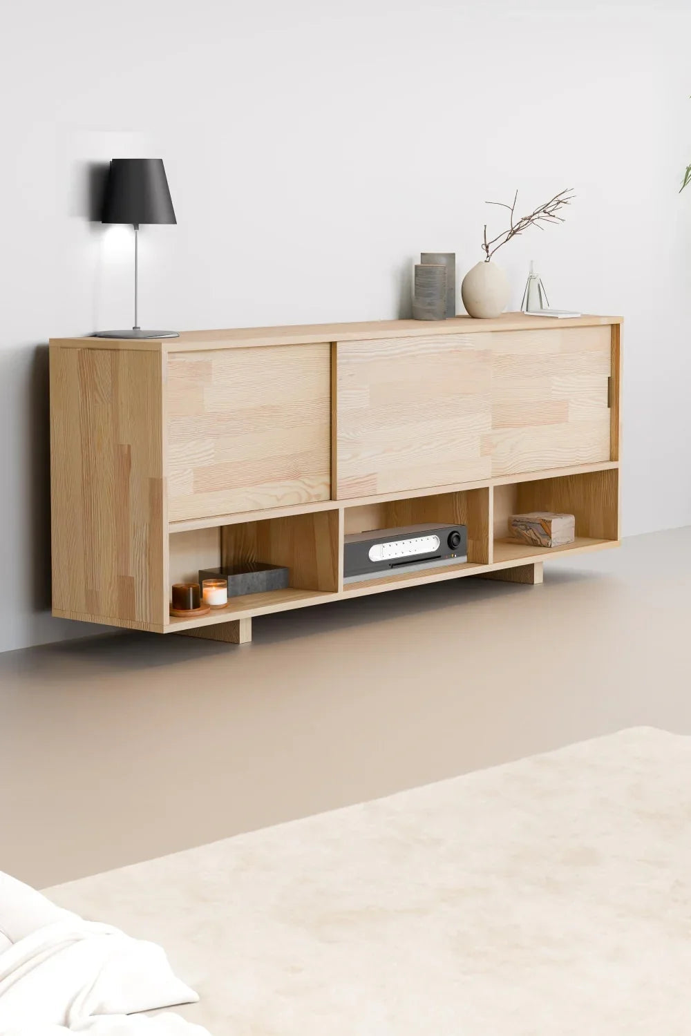 Ürün Özellikleri Masif doğal ahşap gövde Açık bölmeli depolama tasarımı El işçiliği üretim Çok amaçlı kullanım (konsol, büfe, TV ünitesi) Dayanıklı ve sağlam konstrüksiyon