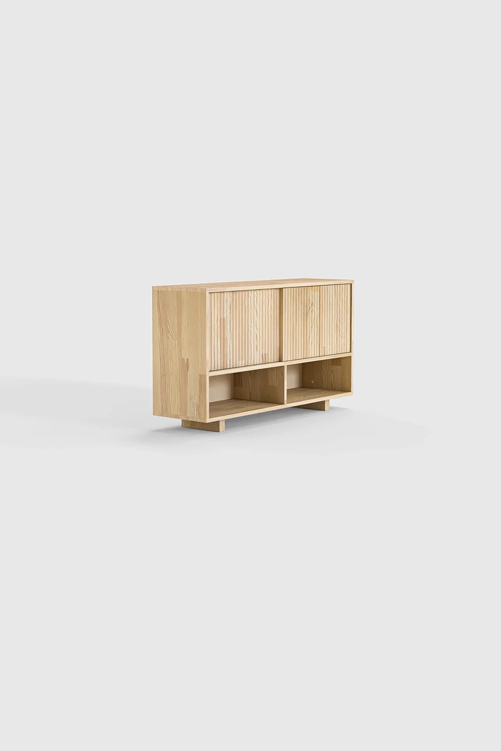 İskandinav tasarımının sade ve dengeli çizgilerinden ilham alan bu masif ahşap açık bölmeli konsol, estetik ve işlevselliği zamansız bir formda bir araya getirir. Açık bölmeli yapısı sayesinde hem sergileme hem de düzenli depolama imkânı sunar.