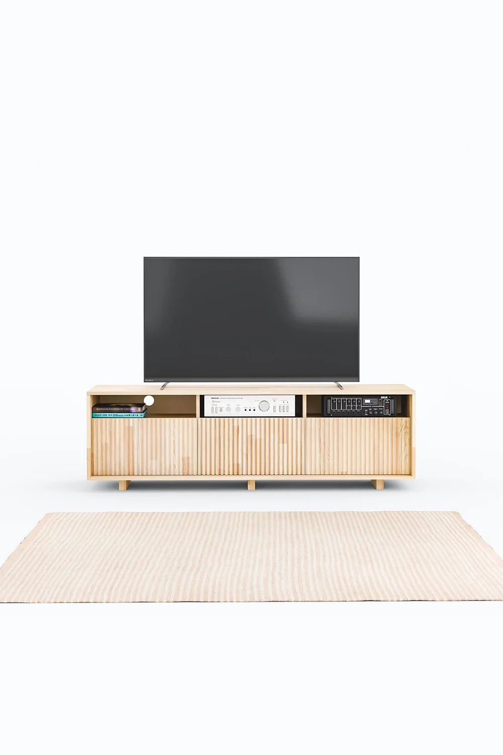 İskandinav tasarımının sade ve dengeli çizgilerinden ilham alan bu masif ahşap TV ünitesi, estetik ve işlevselliği kusursuz bir uyumla bir araya getirir. Minimal formu sayesinde yaşam alanında zamansız ve güçlü bir duruş sergiler.