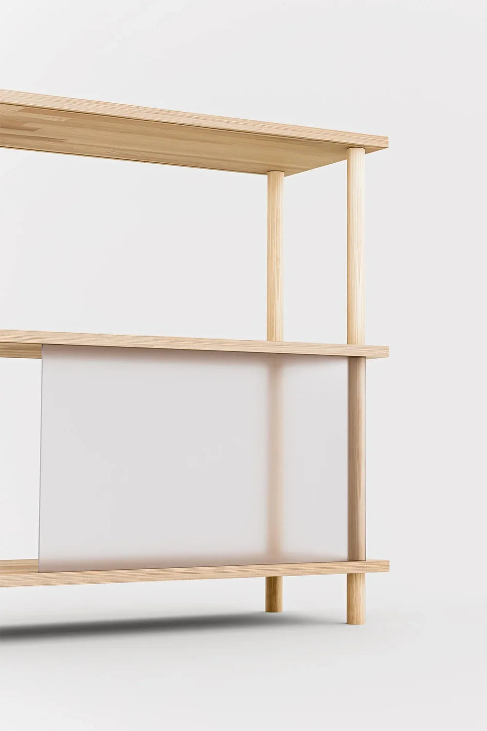 Mimar tasarımı bu 3 raflı kitaplık, stil ve işlevselliği dengeli bir formda bir araya getirir. 6 farklı renk seçeneğine sahip sürgülü plexiglass kapakları sayesinde yarı kapalı alanlar oluşturur; görüş alanında olmasını istemediğiniz eşyalar için pratik bir çözüm sunar.