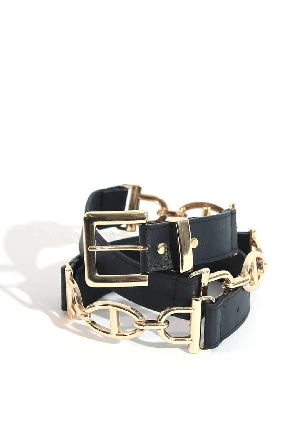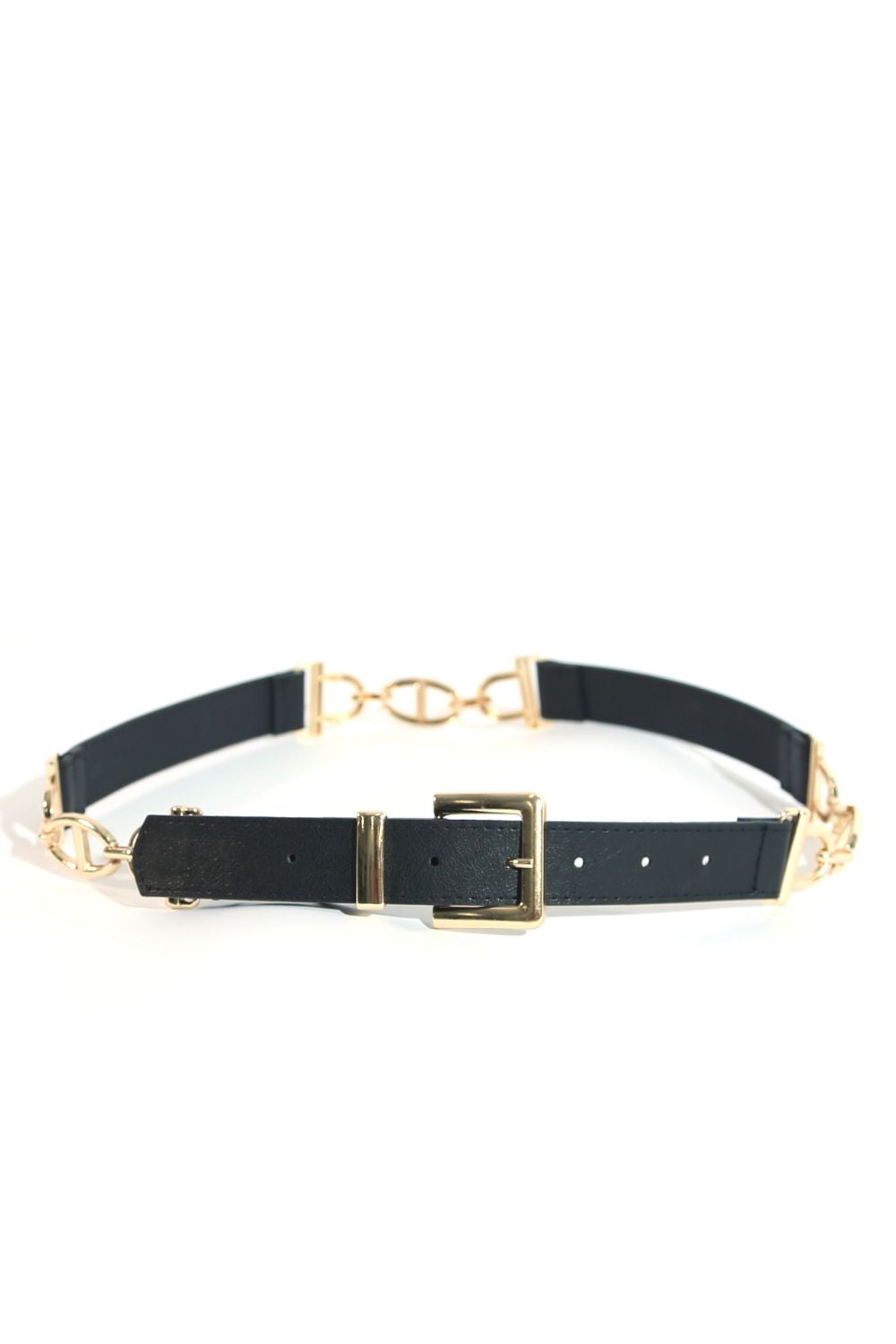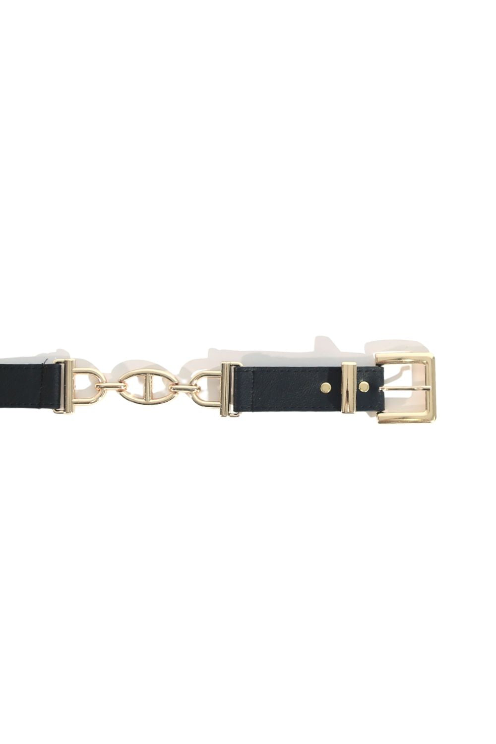 Siyah Zincir Detaylı Vegan Deri Kemer