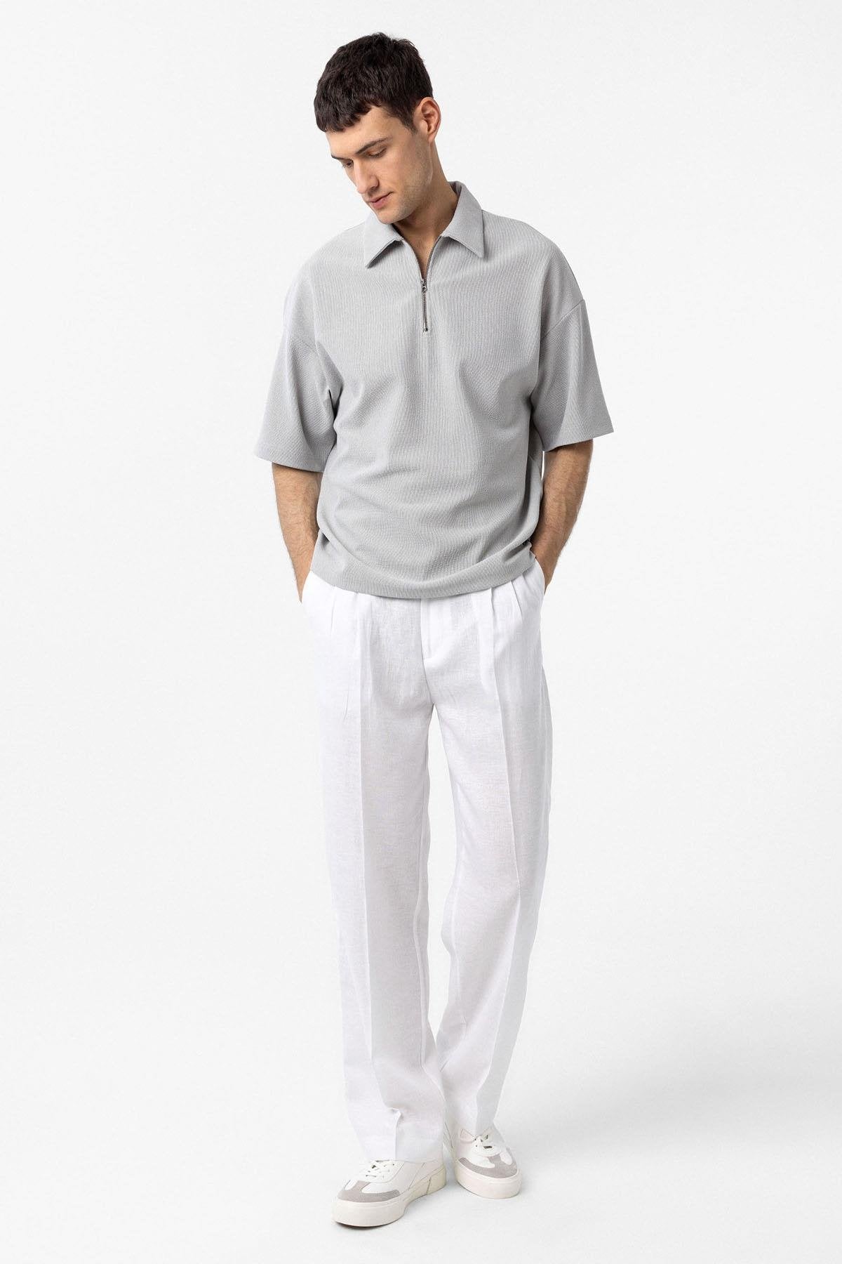 Açık Gri Relax Fit Fermuarlı Polo Yaka Erkek T Shirt