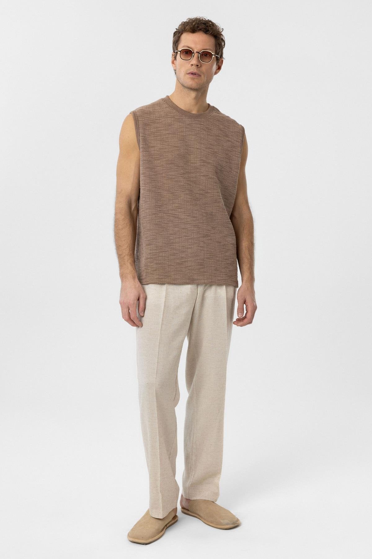 Vizon Regular Fit Dokulu Erkek Kolsuz T Shirt