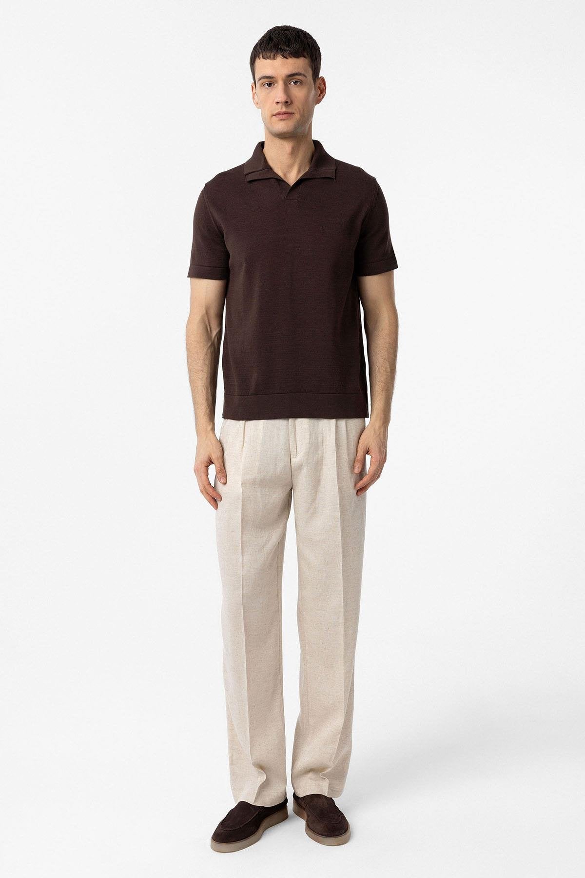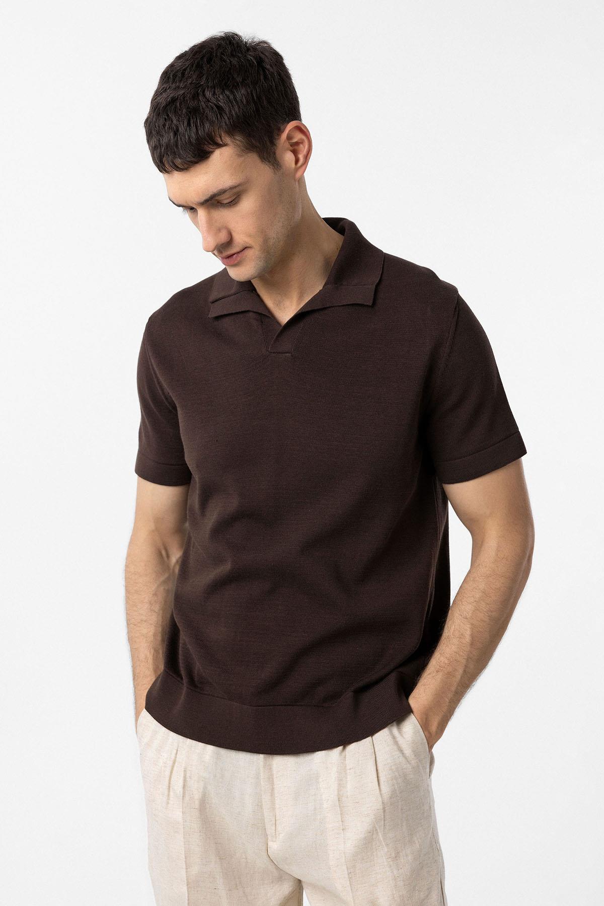Kahve 100% Pamuk Apaş Yaka Triko T Shirt