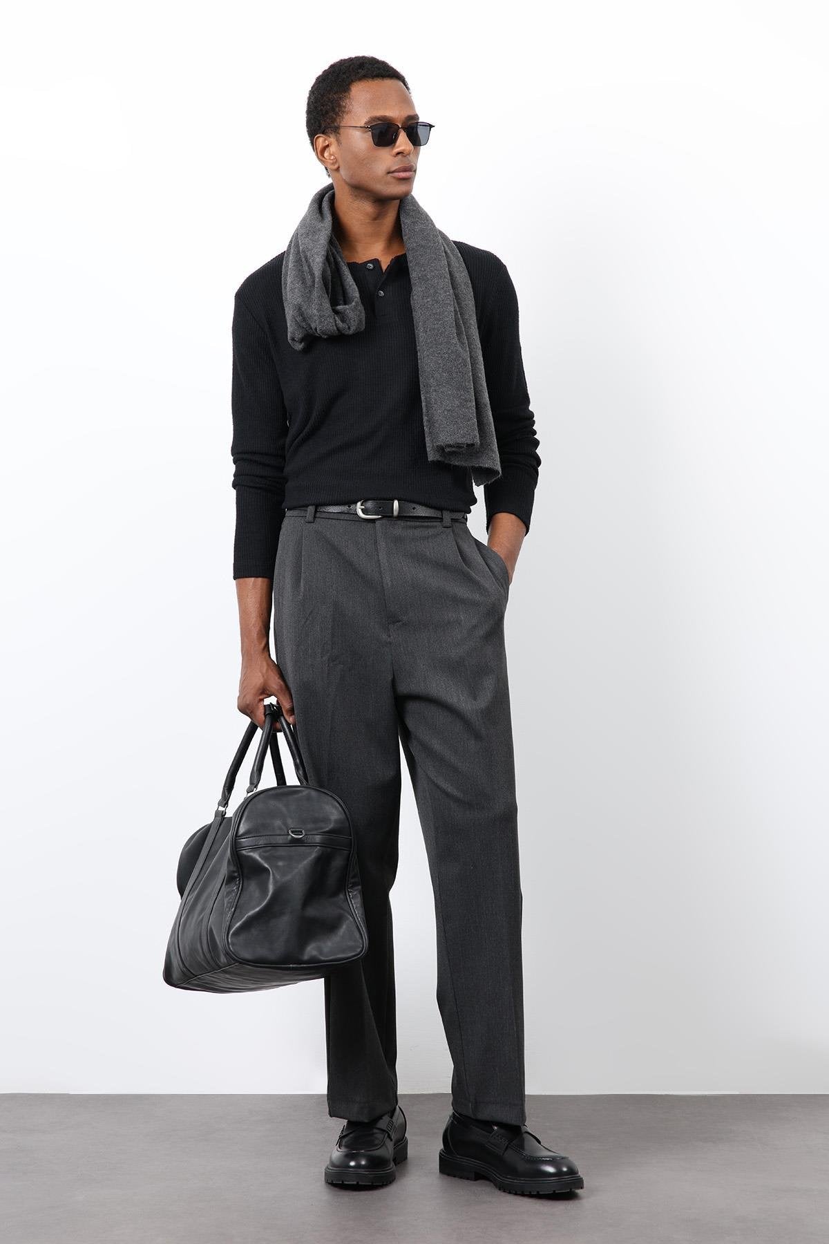 Siyah Fitilli Düğmeli Yaka T Shirt