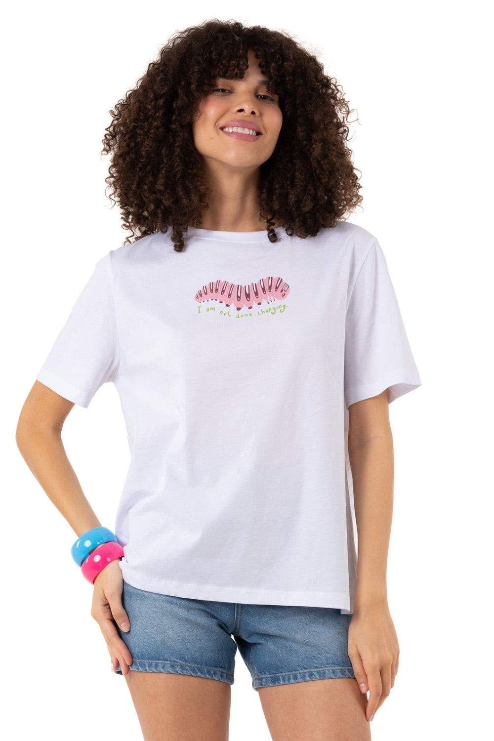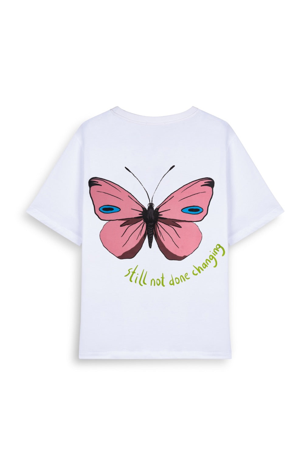 Değişim ve dönüşümün gücünü üzerinde taşı! Bu özel tasarımlı tişört, hayatın her anında gelişmeye ve ilerlemeye devam ettiğimizi hatırlatıyor. Rahat kesimi, yüksek kalite emprime baskısı ve oversize kalıbı gün boyu konforlu hissetmenizi sağlayacak.