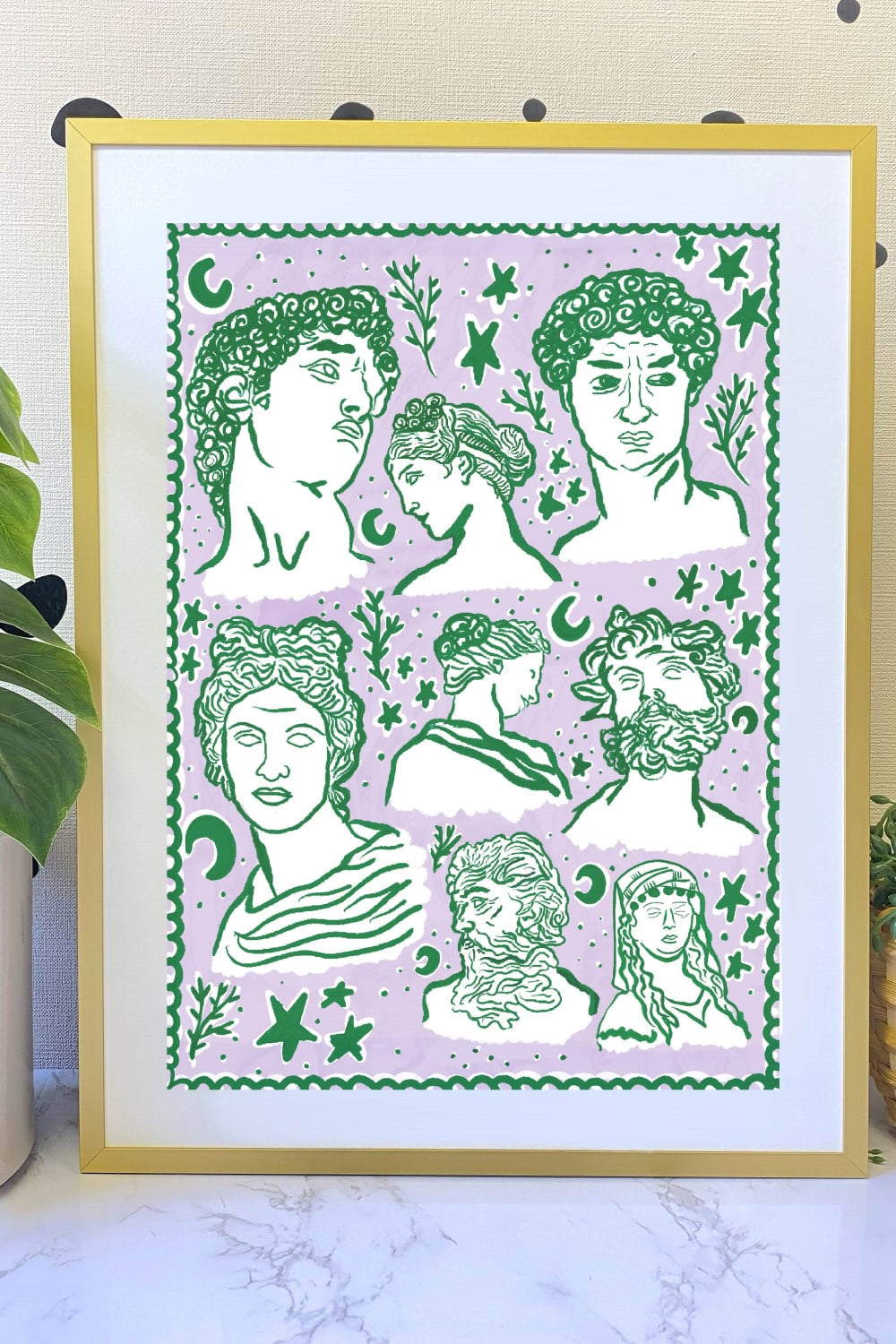 'Greek Gods' baskısıyla antik Yunan mitolojisine hayranlığınızı evinize taşıyın ve duvarlarınızı bu mistik ve büyülü atmosferle süsleyin.
