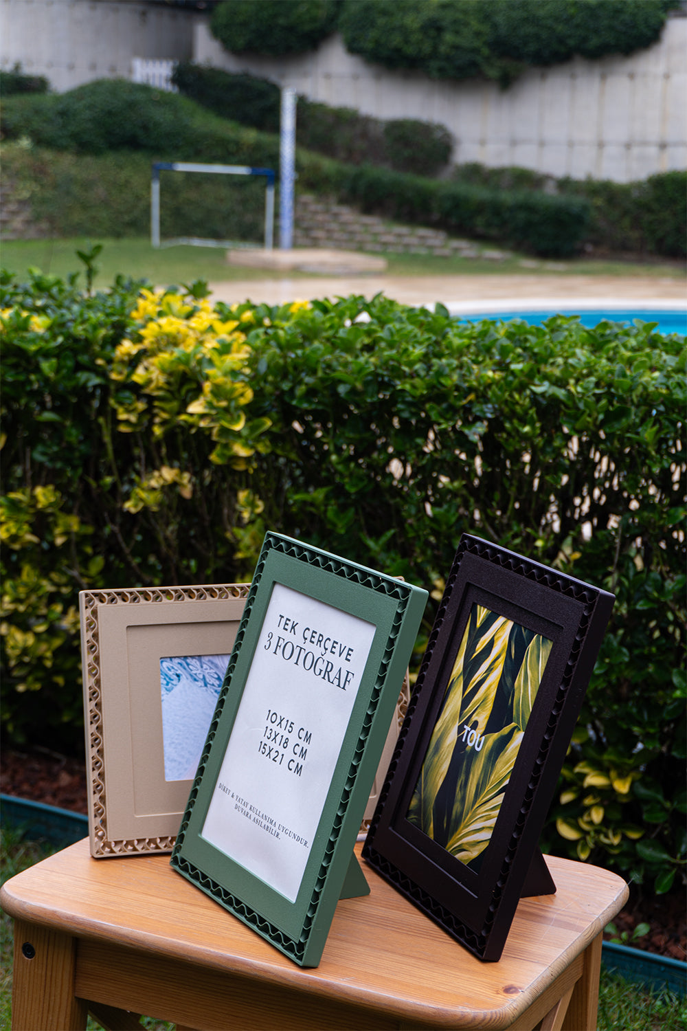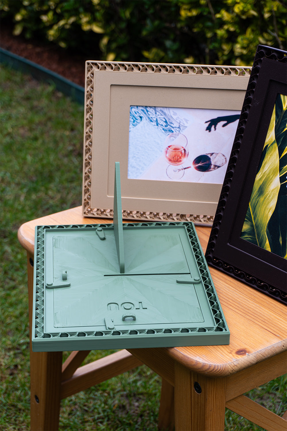 Çerçeve; yatay ve dikey kullanımın yanı sıra duvara asılabilir formda tasarlanmıştır. Masa üzerinde ya da duvarda, bulunduğu ortama kolayca uyum sağlar ve kullanım özgürlüğü sunar.