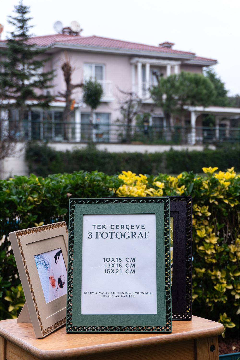 - Tek çerçevede 3 farklı fotoğraf ölçüsü (10×15 / 13×18 / 15×21 cm)
