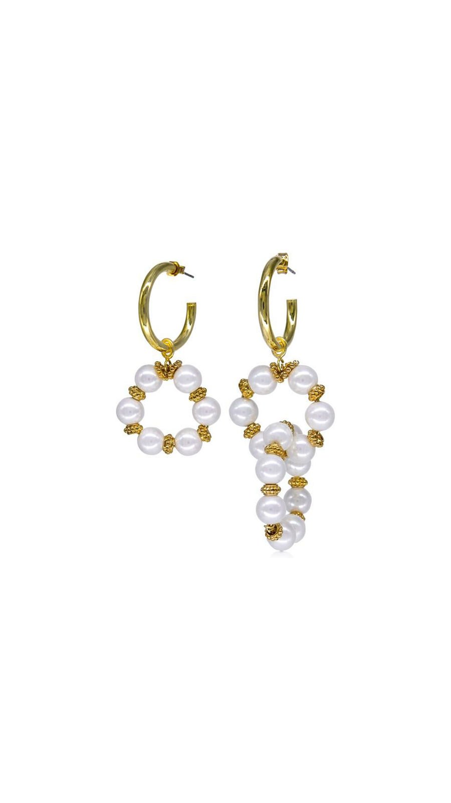 Sharle İnci Küpe, asimetrik bir tasarım ve 22 ayar altın kaplama pirinç halka küpe tepeliğiyle dikkat çekiyor. Her iki küpedeki ana tepelikten sarkan inci ve altın kaplama pirinç halkaların zarif sıralanışı, etkileyici bir halka formu yaratıyor. Sol küpede bu şık form tek olarak yer alırken, sağ küpede iki halka, iç içe geçirilerek daha gösterişli bir görünüm kazandırılmış. Bu asimetrik yaklaşım, Sharle İnci Küpe'ye modern ve özgün bir hava katıyor. Farklılaşmak isteyenler için ideal bir tercih.