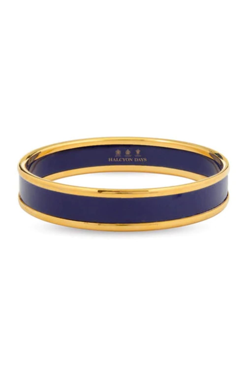 Bu şık emaye takmalı bilezik 10 mm genişliğindedir ve tek başına veya diğer stillerle birlikte takıldığında bileğe şık bir şekilde oturur. İç kenarında Halcyon Days damgası bulunur.
