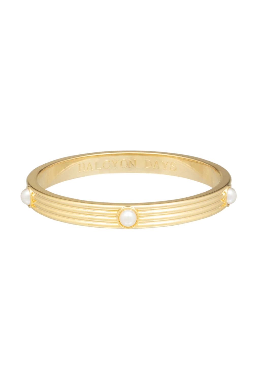 Ribbed Cabochon - Pearl - Gold - Bangle
