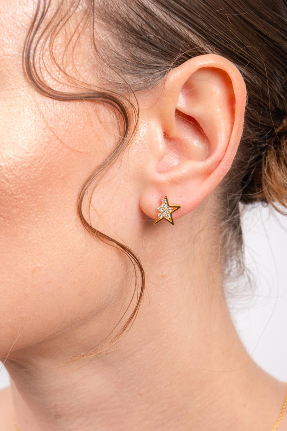 Half Star 925 Ayar Gümüş Mini Taşlı Yarım Yıldız Küpe