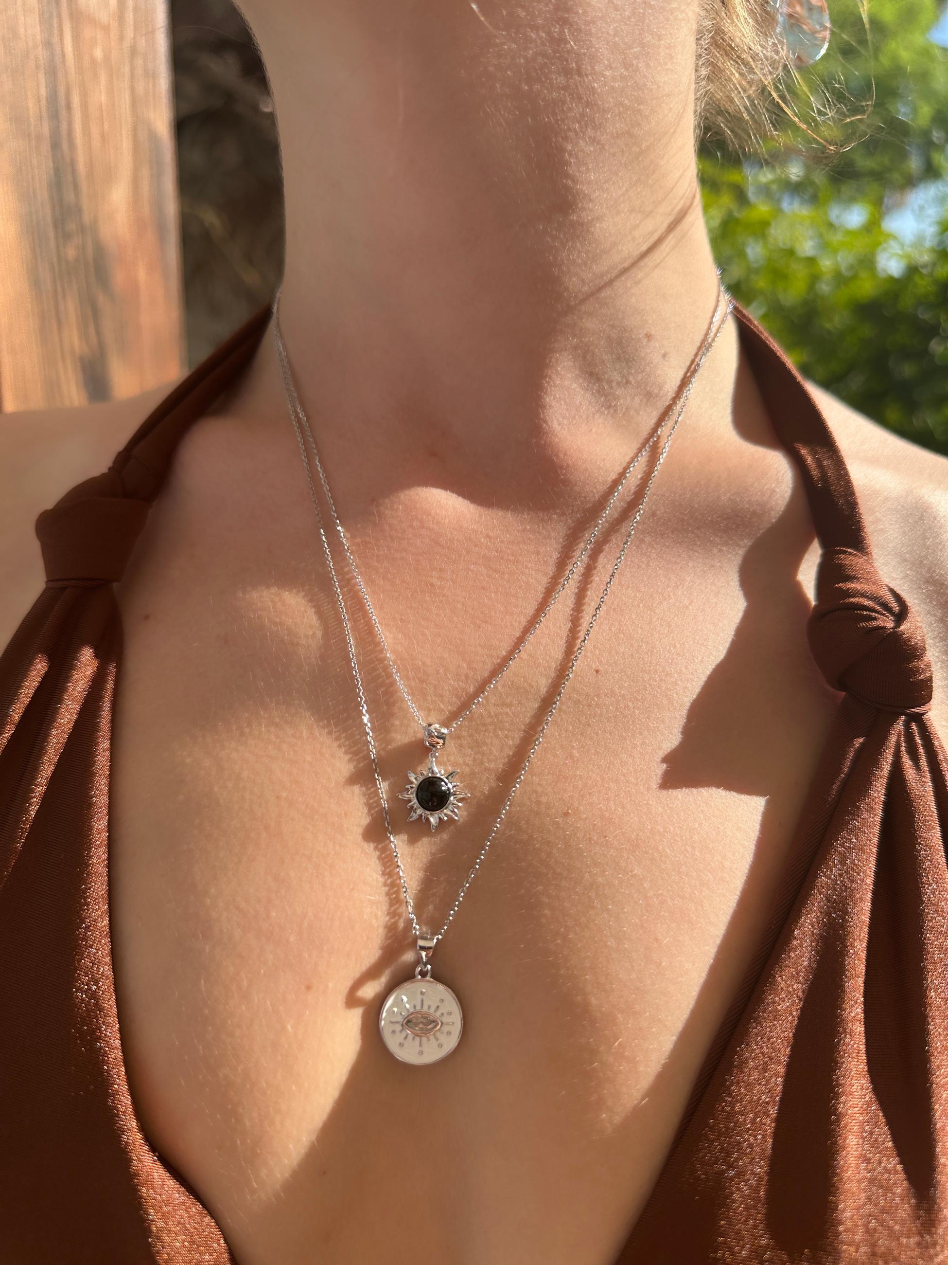Onyx 925 Ayar Gümüş Siyah Taşlı Güneş Kolye