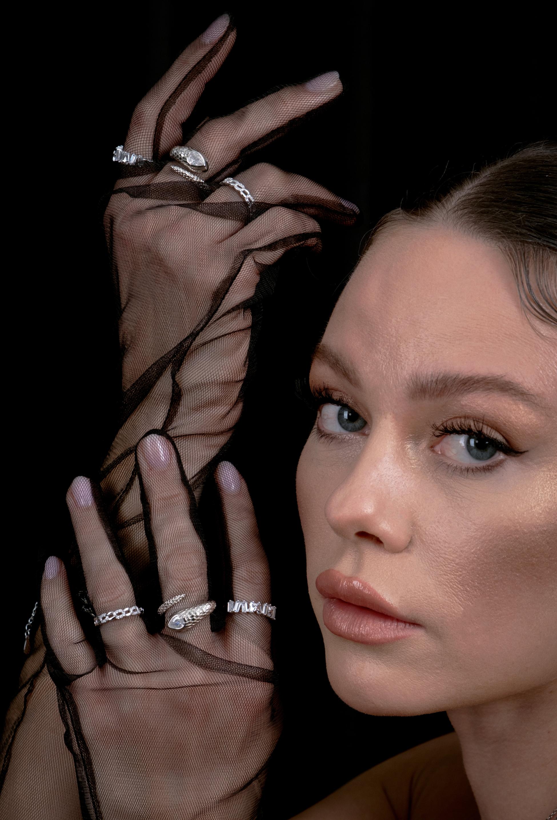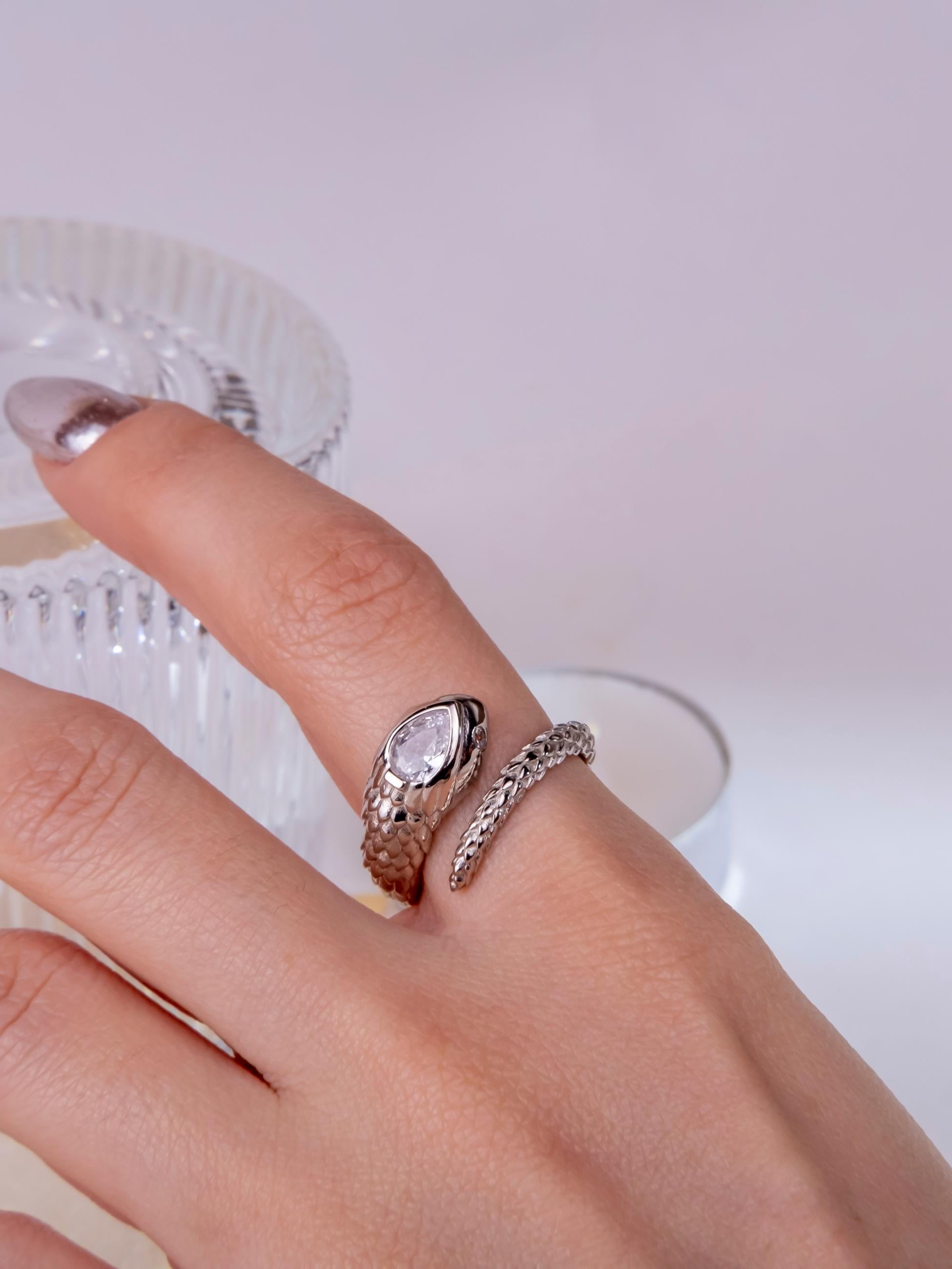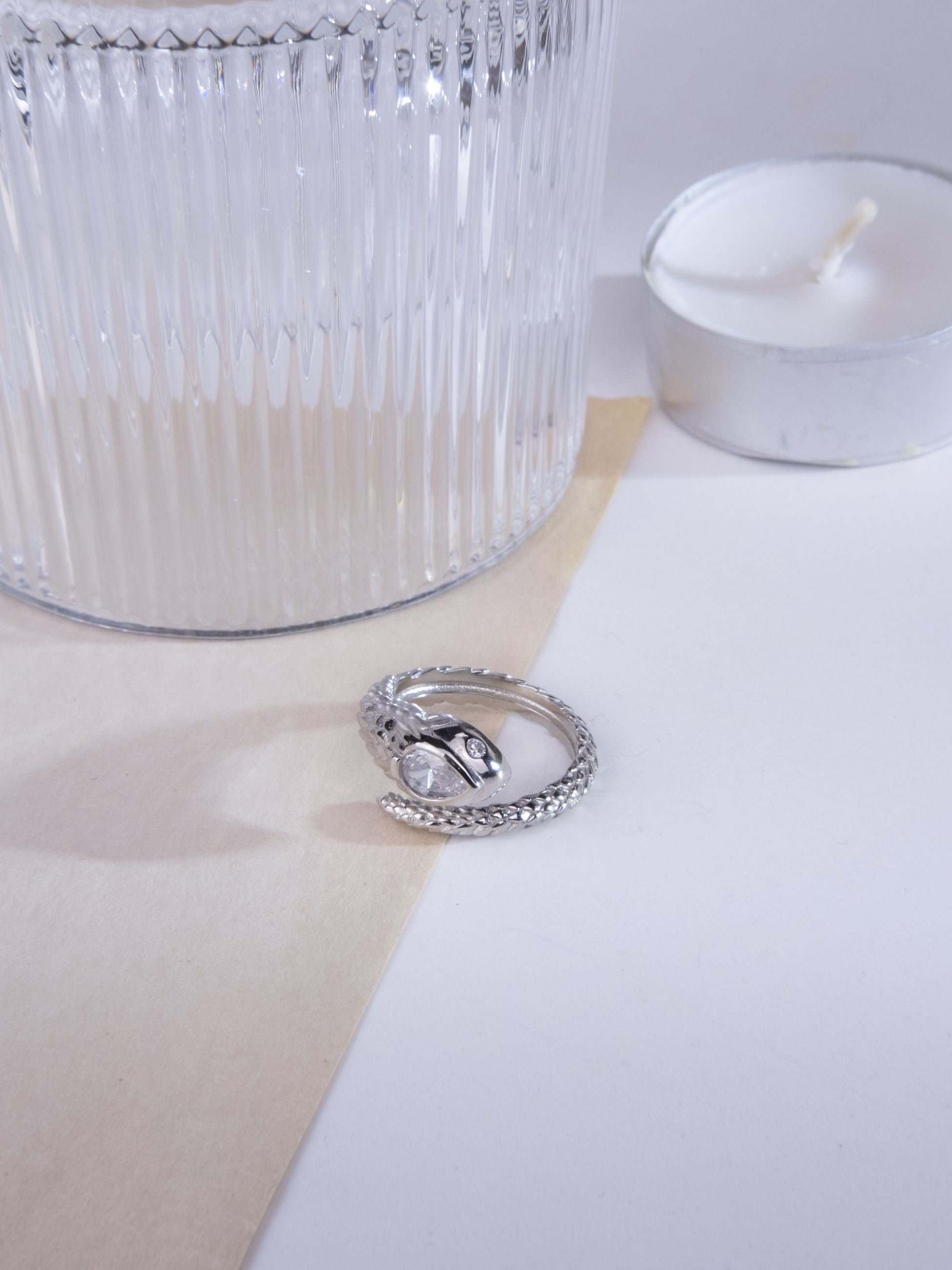 Snape 925 Ayar Gümüş Zirkon Taşlı Tasarım Yılan Yüzük
