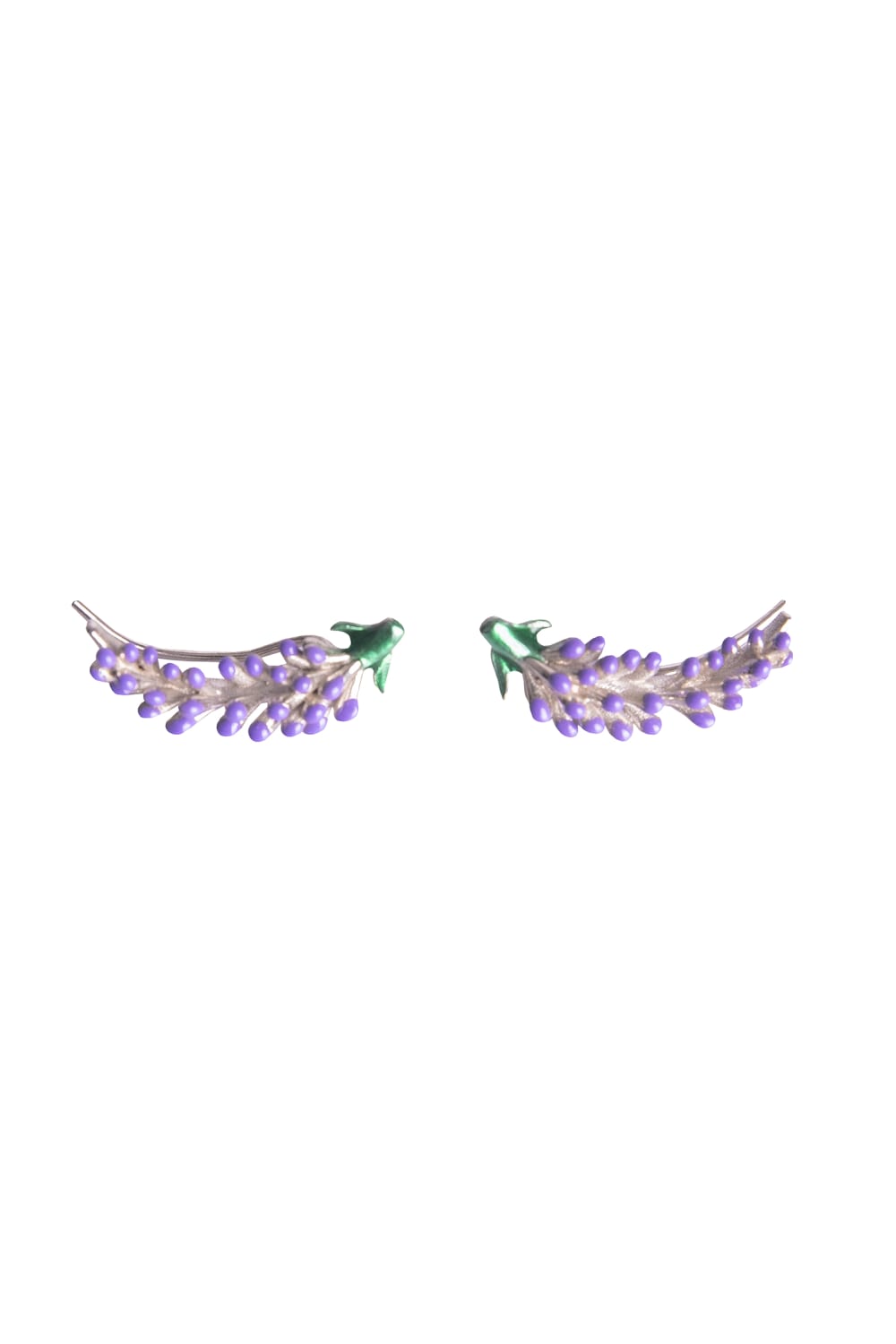 18 ayar mineli beyaz altın kaplama lavanta pirinç küpe
