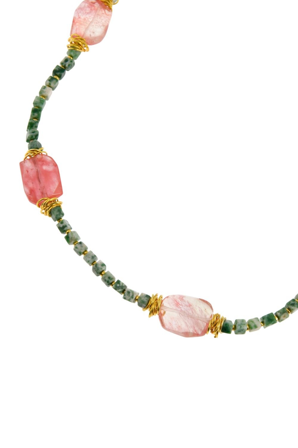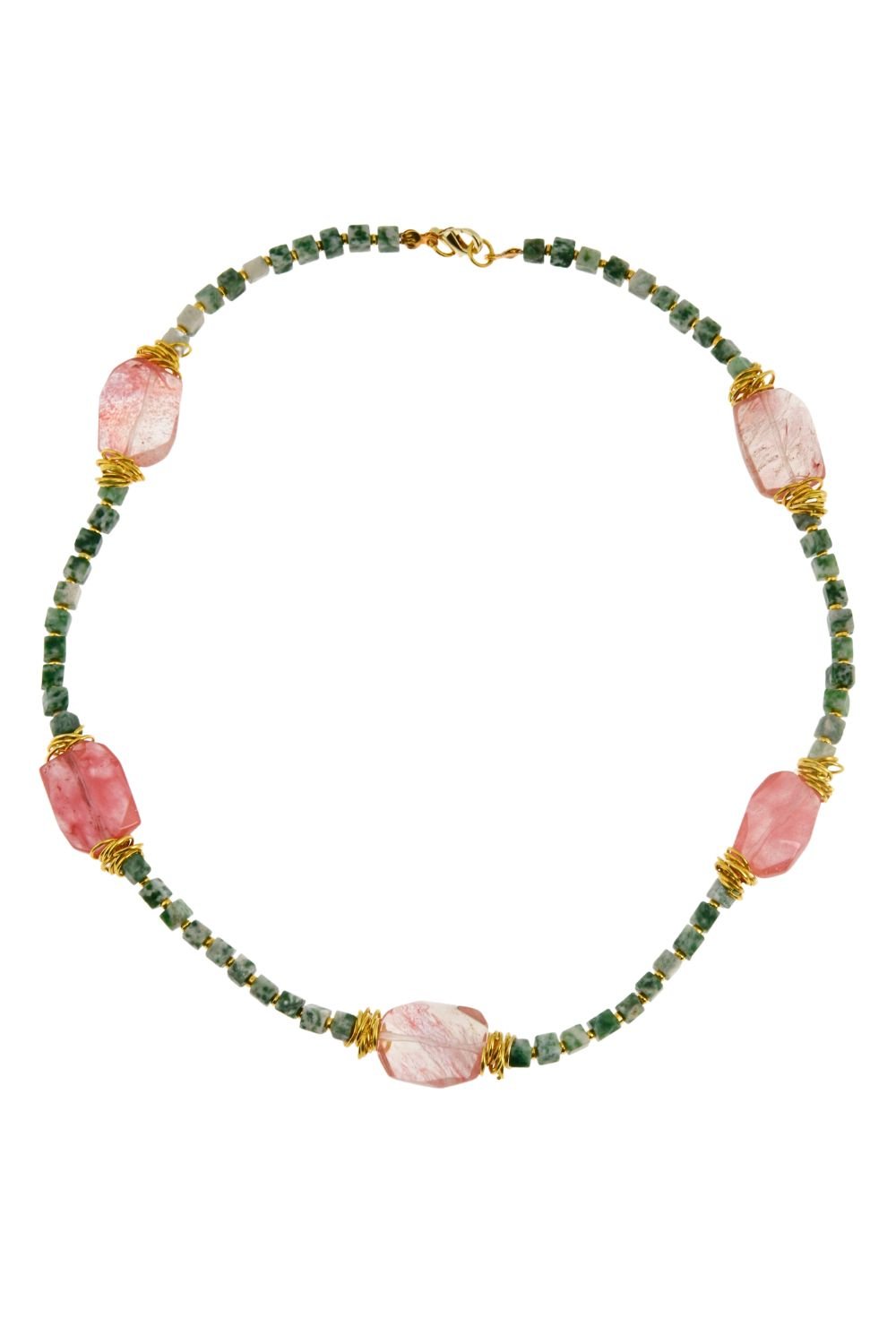 Pirinç Kolye | Yeşil Varasit & Kiraz Kuvars Taşı