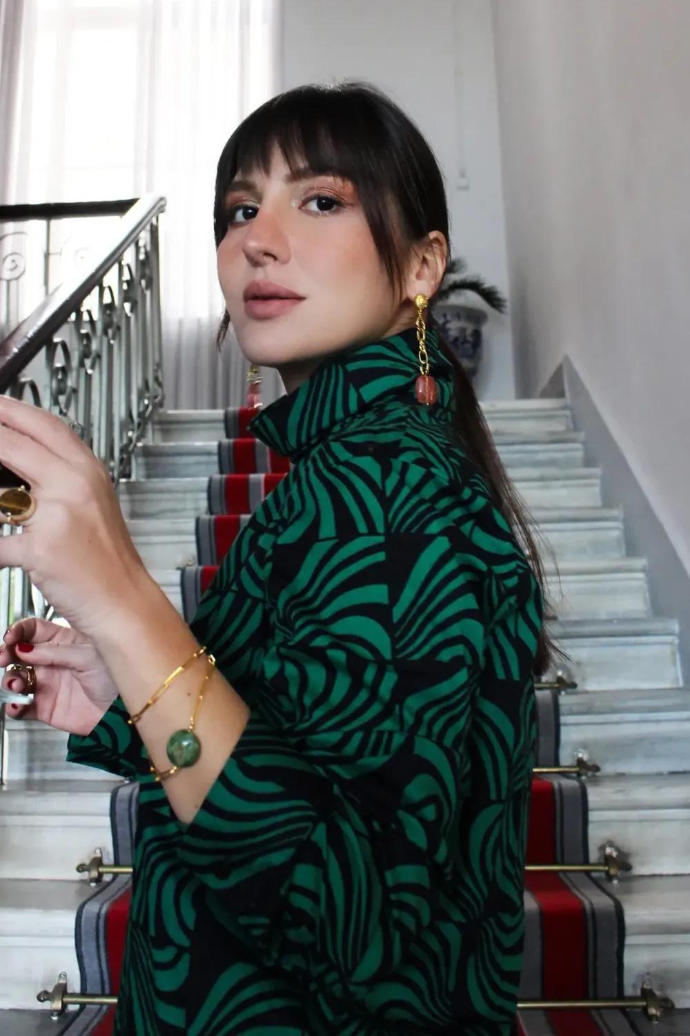 Ürünün madeni 925 ayar gümüş üzeri 18k yeşil altın kaplamadır.