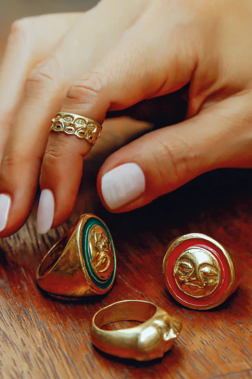 Yeşil Mineli Face Yüzük Takılarınızın uzun ömürlü kullanımı için su, krem, alkol, parfüm, çamaşır suyu vb. maddelerle temasından kaçınınız. İthal bronzAltın ve Mine kaplamaAyarlanabilir ölçüSınırlı üretimNot: Saf madenden yapıldığından kaplama ve koruyucu bulunmamaktadır.